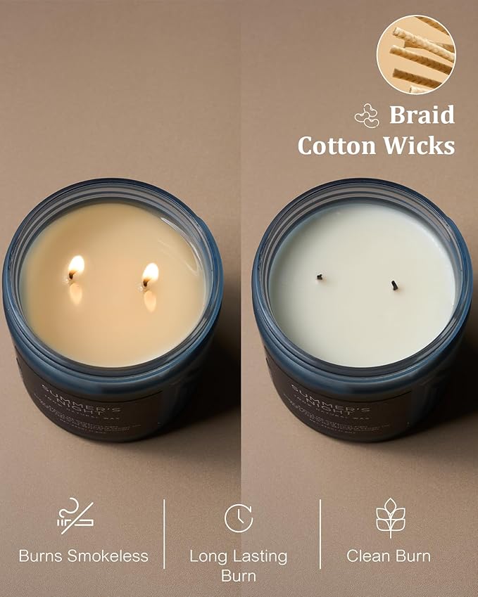 • 🌳 Clean Consistent & Even Burn - Using 2 American made lead-free cotton wicks for a even burn result. They're cotton flat braid wicks with paper throughout, providing increased rigidity and burn more consistently than 100% cotton wicks. Designed to reduce carbon buildup which leads to black soot.