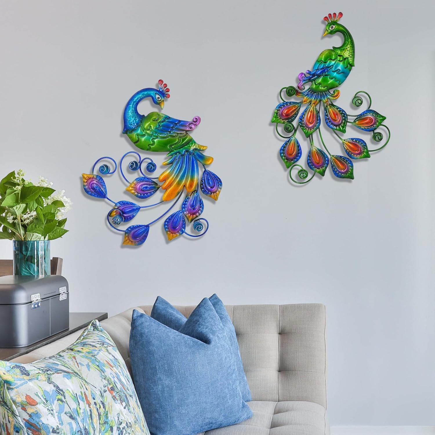 • 【 Widely used 】 These peacock art decorations can be used indoors and outdoors, such as living rooms, bedrooms balconies courtyards gardens backyard decorations, fences wall decorations etc