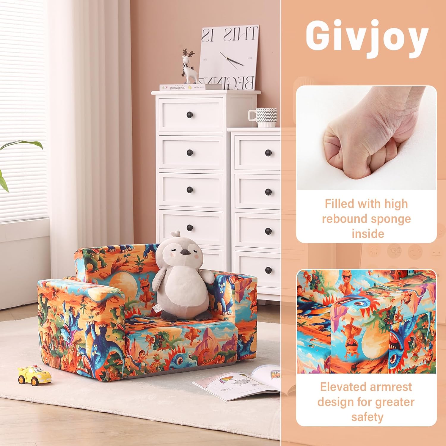 • 【Multifunctional 2-in-1 Design Unique Present for 18 months+ Boys and Girls】The 2-in-1 children's sofa couch is a wonderful present for all kids & toddlers on Birthdays, Christmas, or other occasions! Your child will find this small kids' couch a perfect spot for relaxing, reading, playing, or enjoying their favorite TV shows. Meanwhile, with both modern design and fashionable colors, this small couch can fit any room and add great vitality to your house.