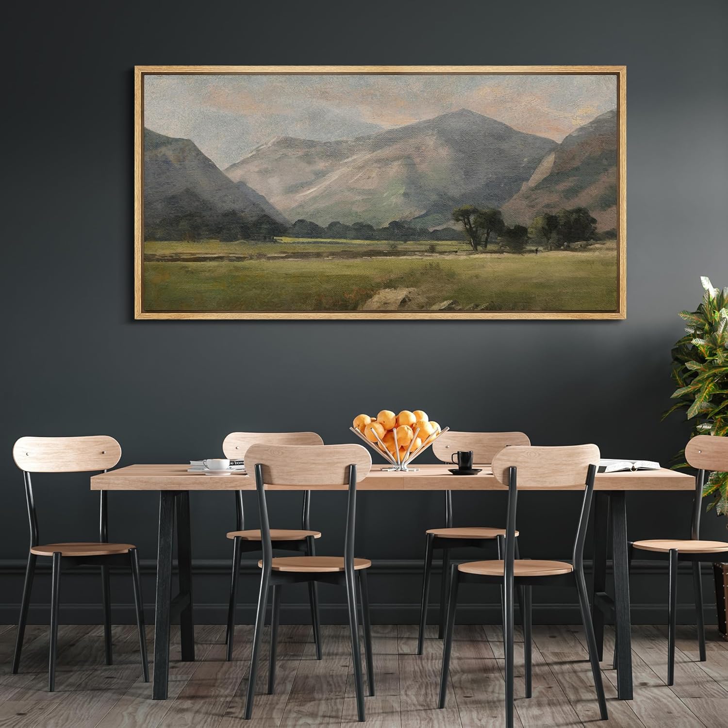 MUDECOR Extra Large Framed Canvas Print Wall Art Pastoral Beauty Classic Mountainous Landscape Illustrations Antique Retro Fine Art Illustrations Decorative Colorful for Bedroom - 60"x30"