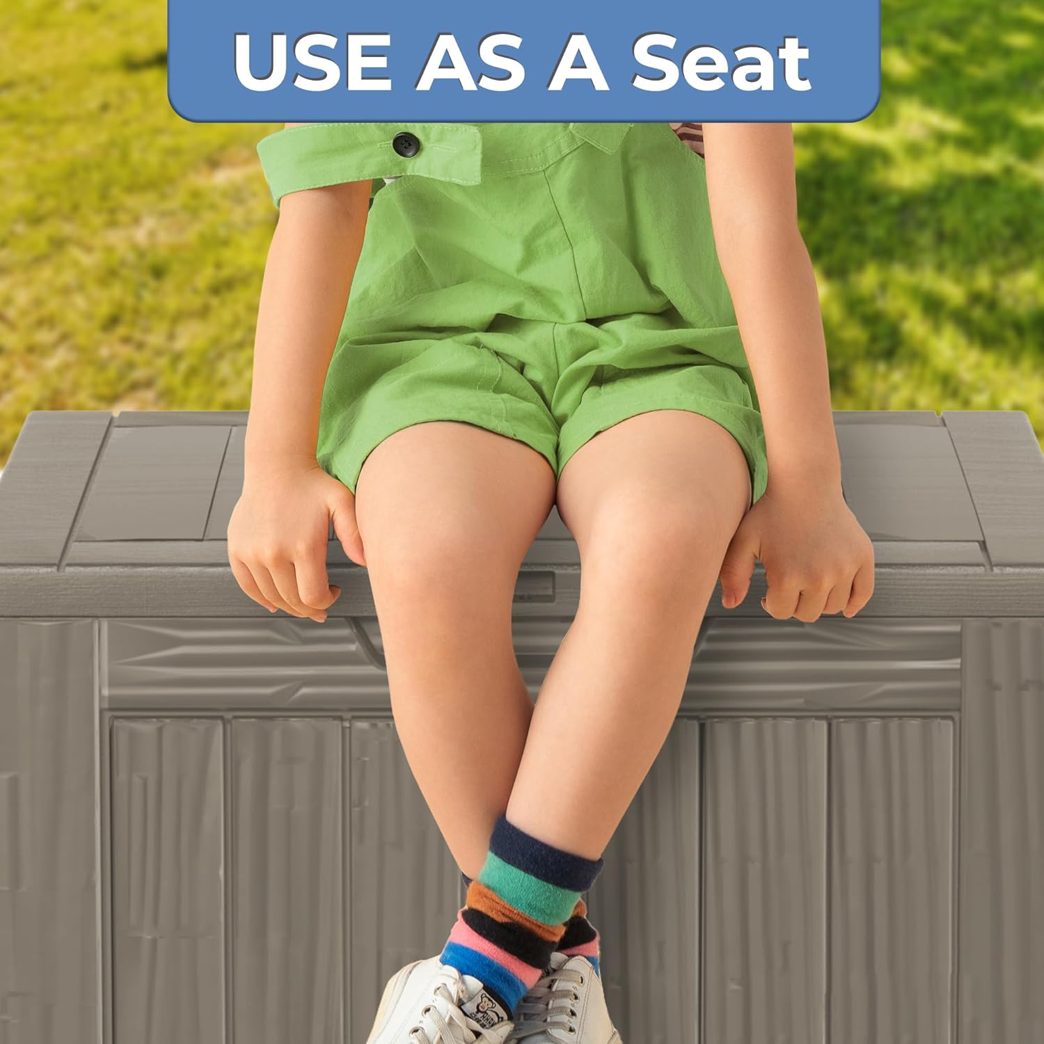 • Wide Range of Use: With a capacity of 35 gallons, this storage box can also be used as a patio seat, storage bench or footstool, whether it's family party supplies, camping equipment, gardening tools.