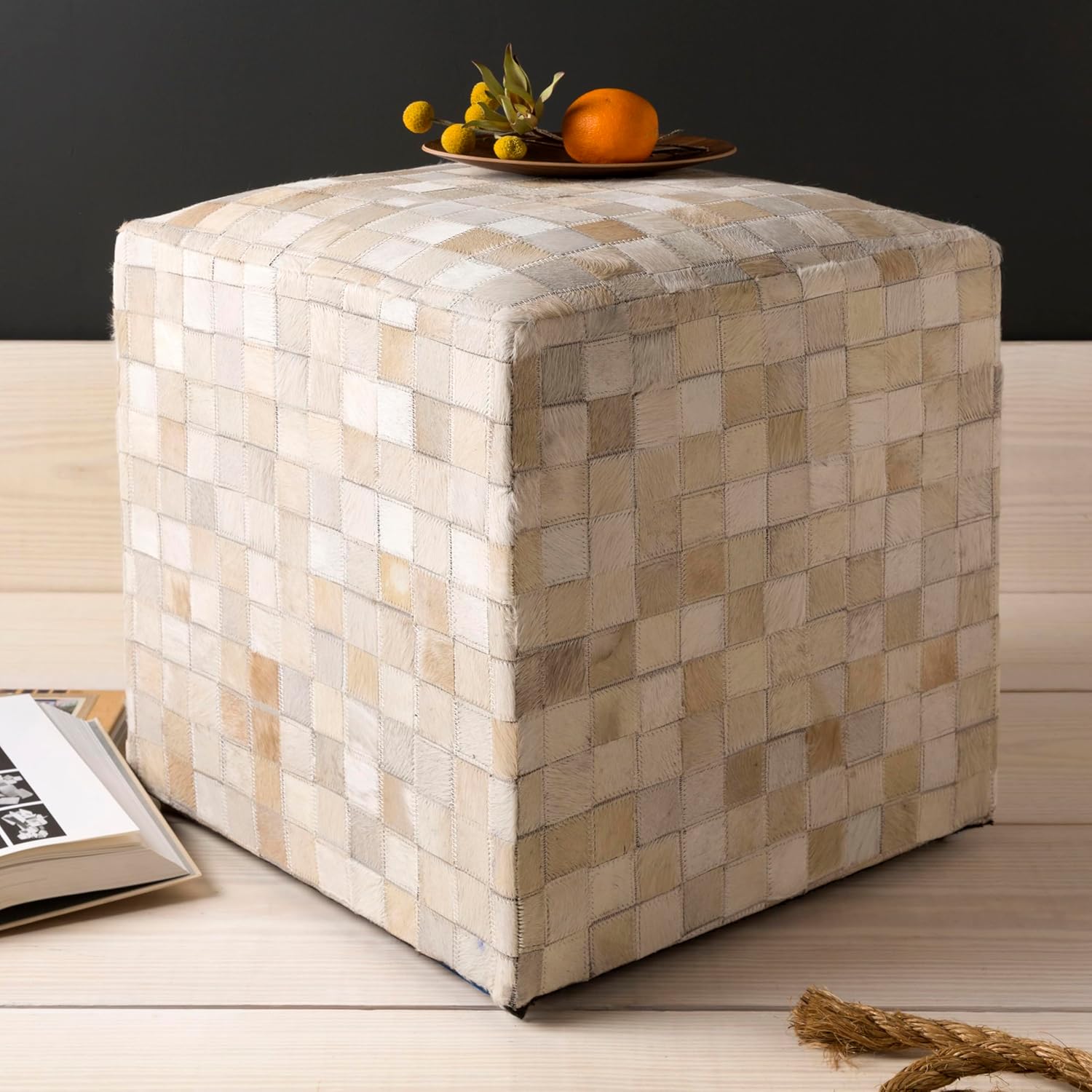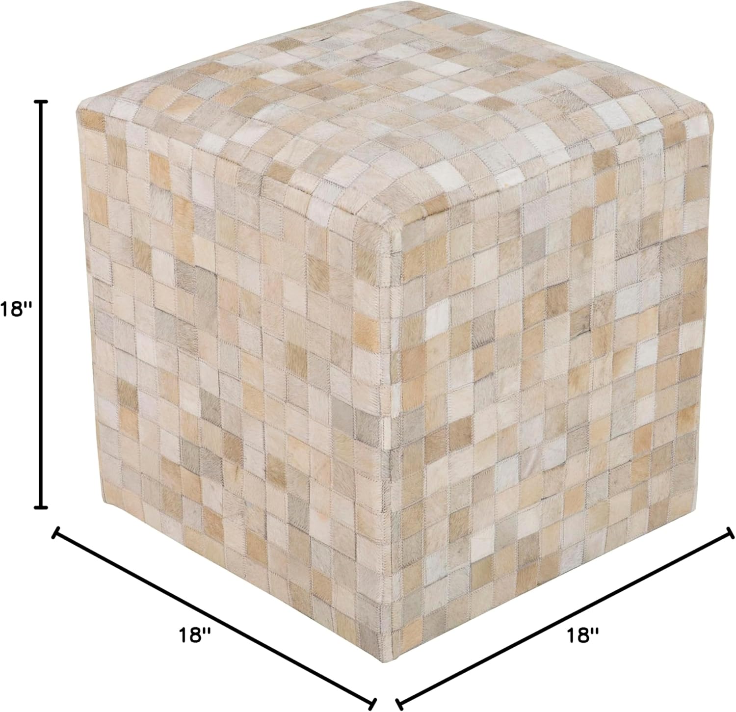 • 【PRODUCT SPECIFICATIONS】Colors: Cream, Camel | Dimensions: 18"H x 18"W x 18"D | Style: Hide Leather and Fur | Shape: Cube | Construction: Leather
