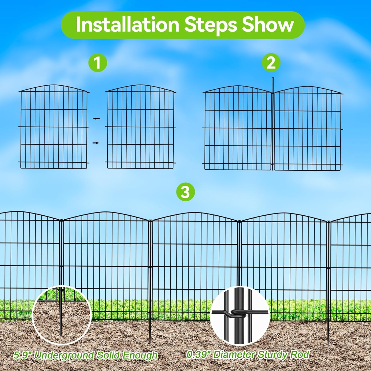 • MULTI-PURPOSE DECORATIVE FENCE:The dog fence for the yard can be used as a garden fence or animal barrier fence and can be set up around plants, trees, patio landscaping, vegetables, as a plant protection fence, garden landscape fence, flower bed fence and more. Can also be used as a pet fence such as dogs or rabbits to prevent small animals from escaping or entering and ruining your garden. Can also be used decoratively on driveways, walkways, backyard decorations and garden borders