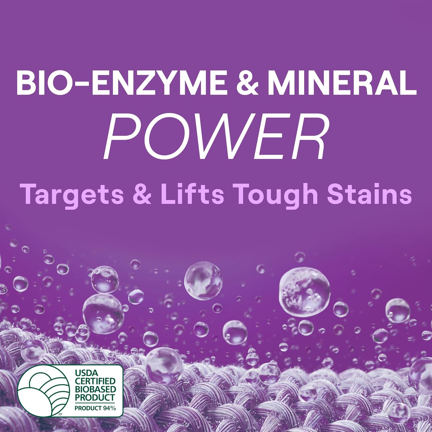 • Made with triple bio-enzymes and mineral power to fight odors and stubborn stains like chocolate, dirt, and grass.