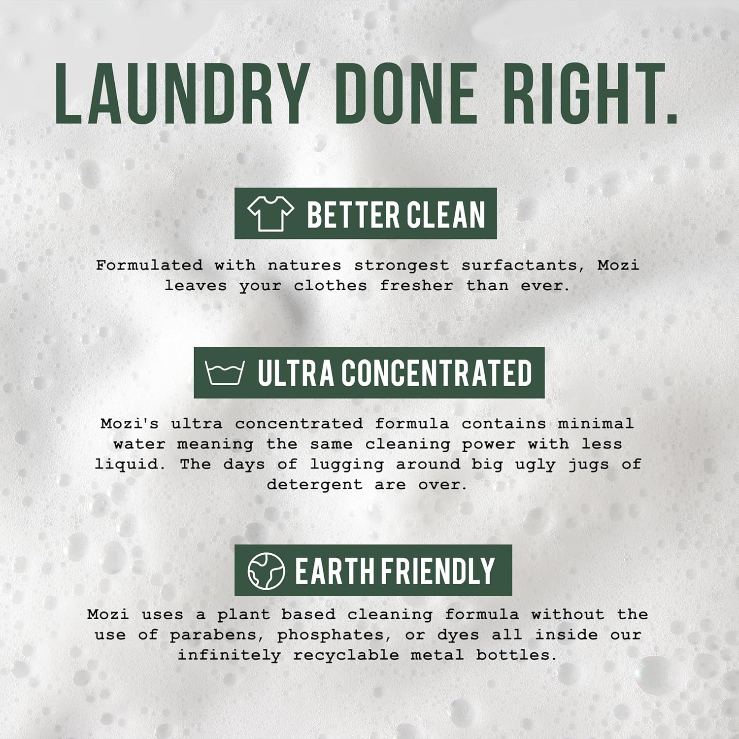 • EARTH FRIENDLY & MIXED IN LOS ANGELES: Crafted with a non toxic, cruelty free formula, Mozi is free from dyes, parabens, and phosphates. Packaged in recyclable metal bottles and made fresh in Los Angeles, it’s eco-friendly laundry detergent that looks as good as it performs.