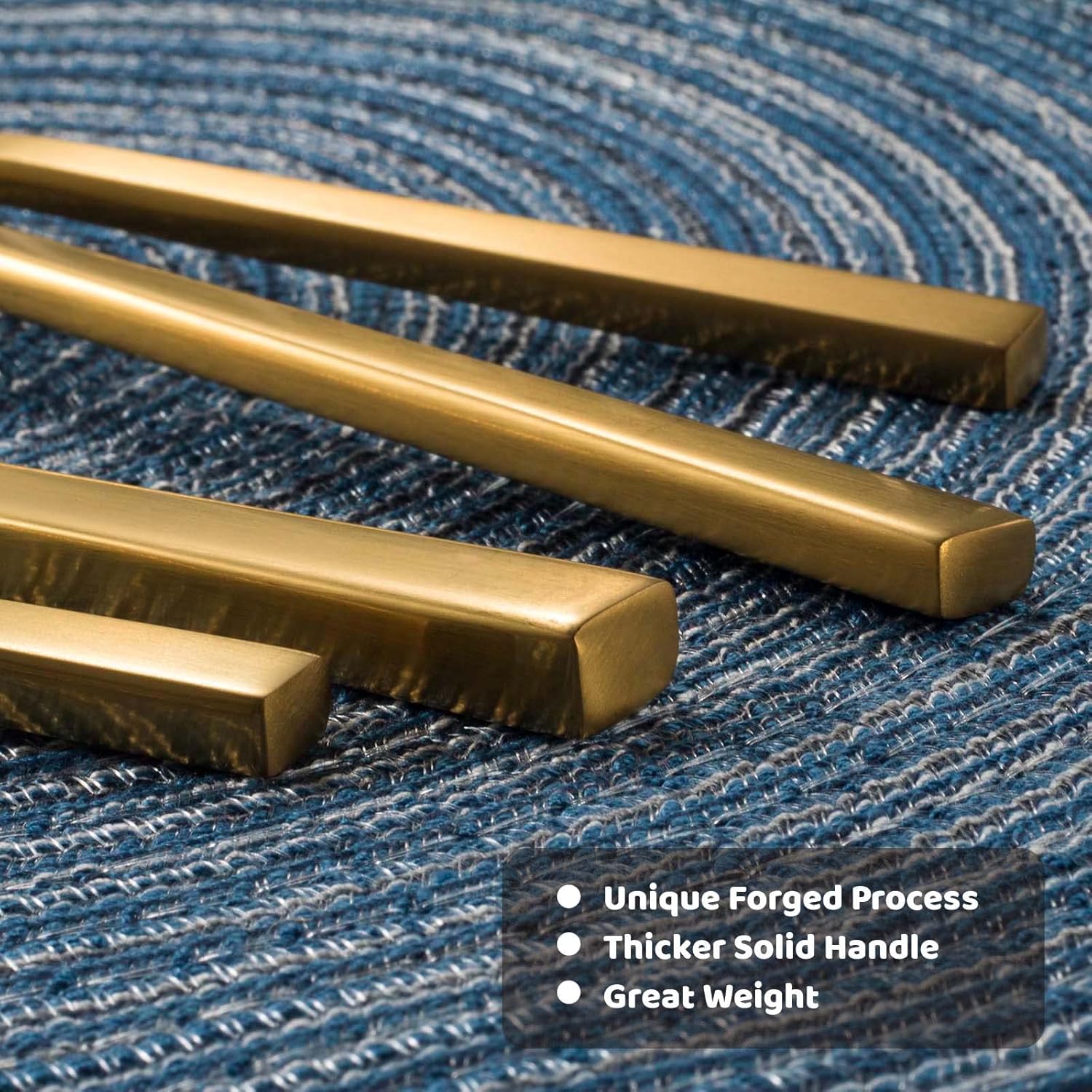 • Dishwasher Safe & Easy to Clean: The matte gold forged flatware set is dishwasher safe and easy to care for and clean in daily use. Crafted forged process, strong and durable, so that the flatware set has a thicker texture