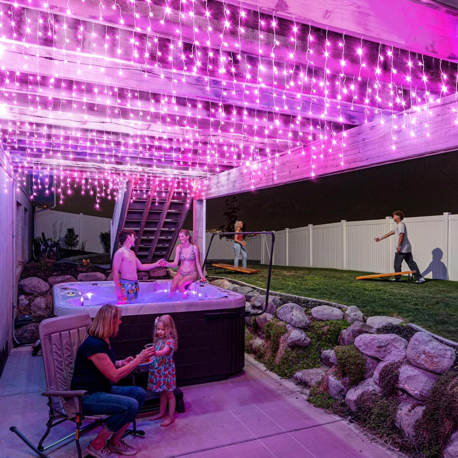 • 🎄 LED Icicle Christmas Lights: 400LED pink Christmas lights totally length is 43ft, including 33ft icicle lights and 10ft extension cord. The outdoor Christmas lights can be connected up to 3 sets to decorate larger areas, suitable for use throughout the year - birthdays, anniversaries, Christmas decoration. The connectable icicle lights can be controlled by one button on the power adapter. Hang these fairy string lights outdoor indoor to create warm and romantic atmosphere for you.