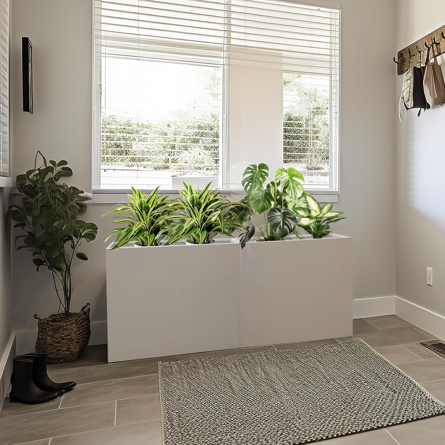 • WIDELY APPLICABLE - The White sleek metallic finish adds a touch of modern sophistication to any space, whether it's your garden, patio, or living room.This rectangular flowerpot serves as a beautiful accent.