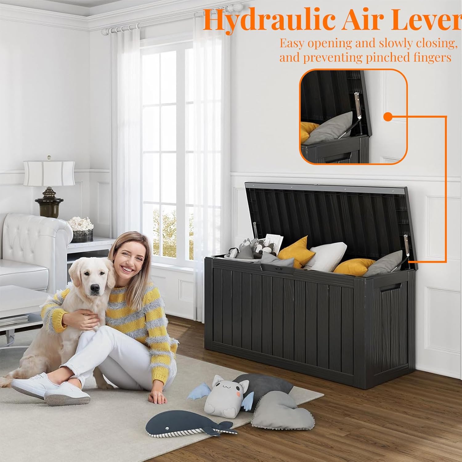 • VERSATILE IN EVERY SETTING: This patio storage box doubles as an indoor laundry organizer and an outdoor yard storage unit for cushions, garden tools, pool accessories, outdoor gear, and more, offering ample space. It can also serve as a side table, patio seat, storage bench, or footstool