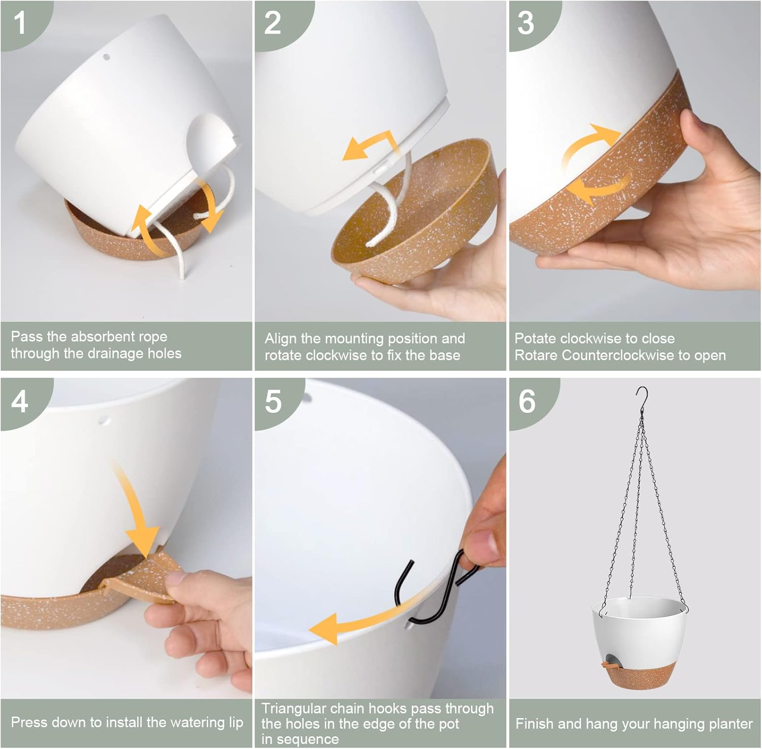 • High Quality - Super load-bearing triangulated chain with three rust-resistant chain and hook, sturdy and increased stability of Hanging plant basket indoor. The plant hanger's thick sidewalls are made of high-quality plastic, size: 6" D x 5.5" H. With a vertical hanging design, it conveniently saves space.