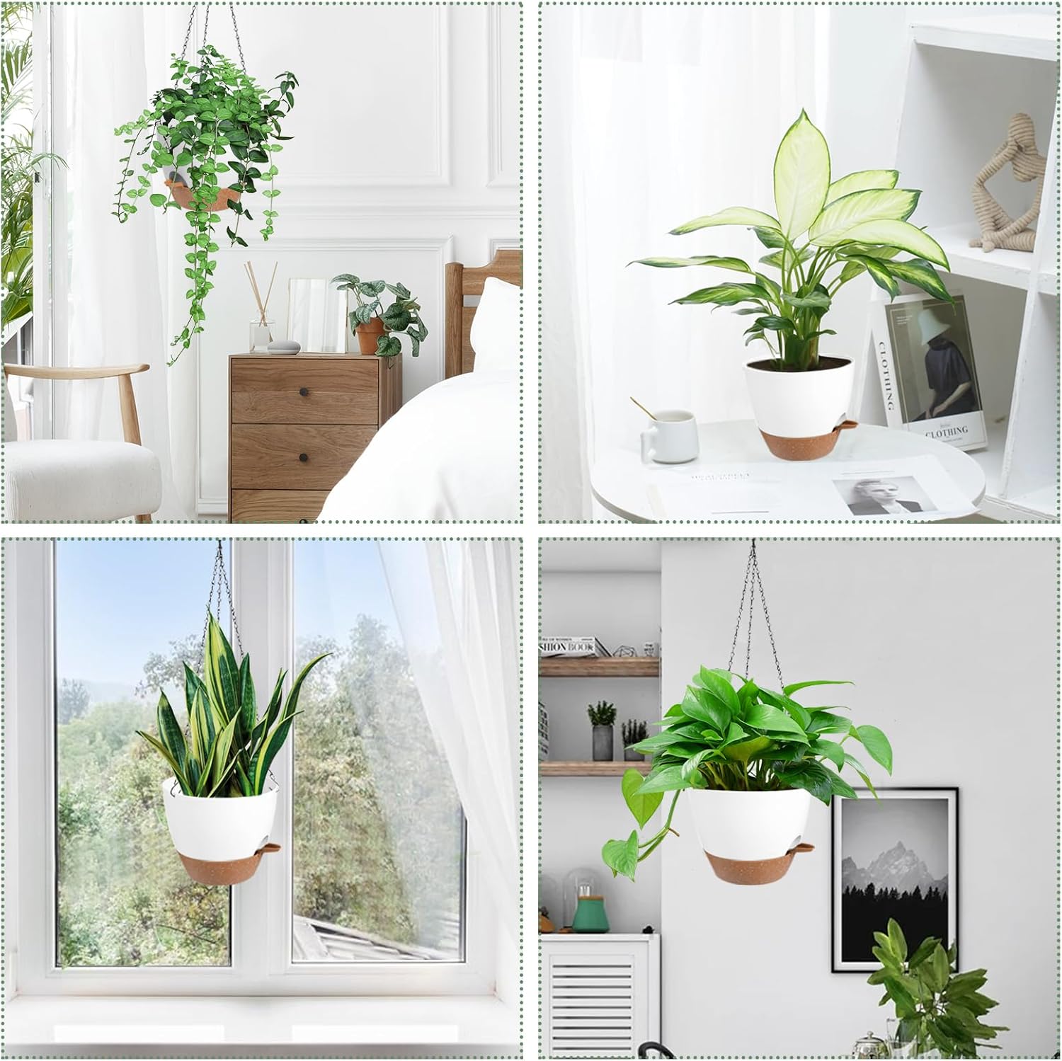 • Self Watering Planters Unique Style Design - The appearance and structural design of the self watering hanging planters for indoor plants are conducive to plant growth, and are suitable for matching various hanging plants. Such as ivy, herbs, ferns, philodendrons, succulents, flowers or other plants. Please Note: Plants NOT included.