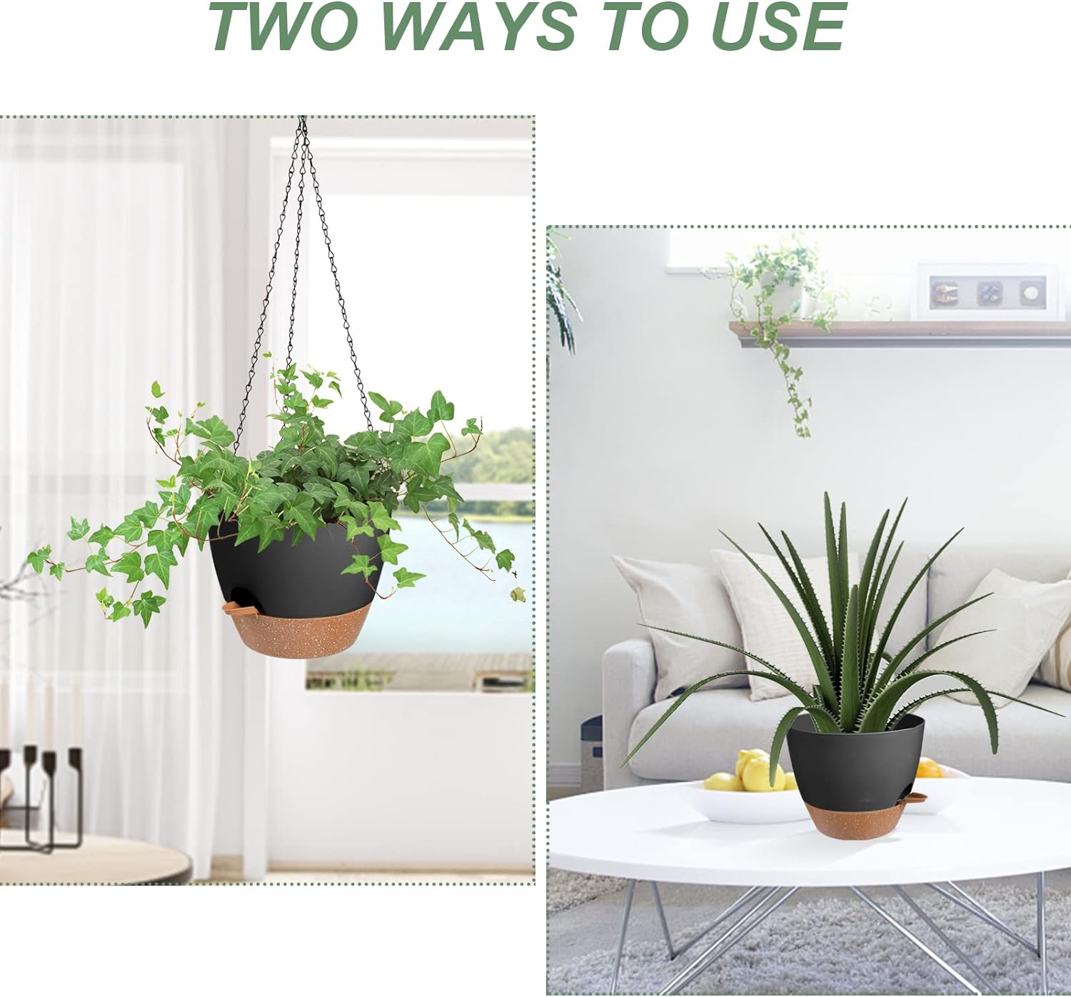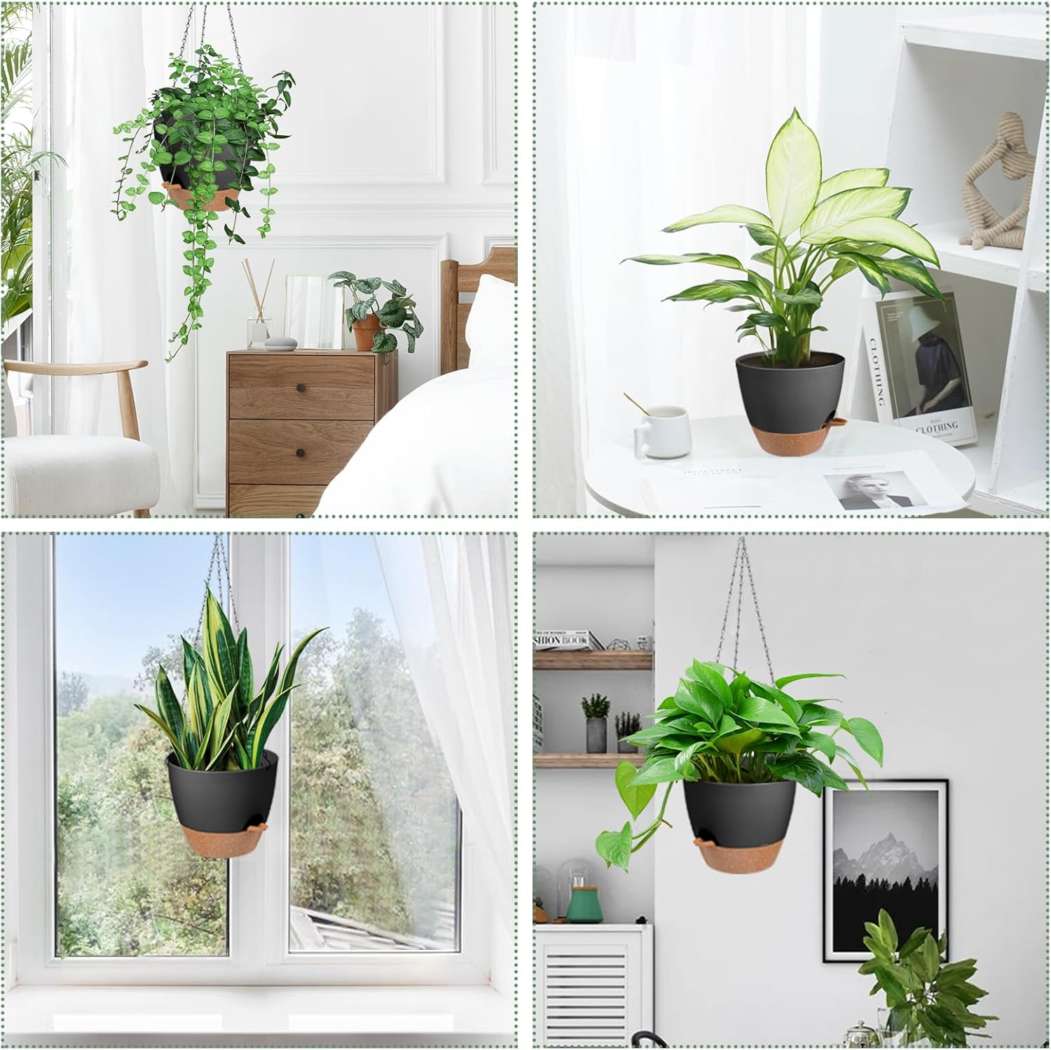 • Self Watering Planters Unique Style Design - The appearance and structural design of the self watering hanging planters for indoor plants are conducive to plant growth, and are suitable for matching various hanging plants. Such as ivy, herbs, ferns, philodendrons, succulents, flowers or other plants. Please Note: Plants NOT included.