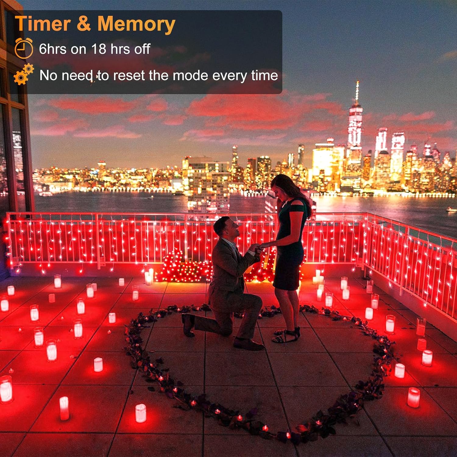 • 【8 Modes with Timer & Memory 】The led Christmas lights outdoor lights have 8 different lighting modes: Combination, In Waves, Sequential, Slo-glo, Chasing/Flash, Slow Fade, Twinkle/Flash, and Steady On. Switch different pattern by pressing the button on the adapter. Long press this button 3 seconds until it turns green, the icicle lights will cycle 6 hours on 18 hours off. Turn off timer, just hold down the button again to darken it. The memory function will retains the last mode setting.