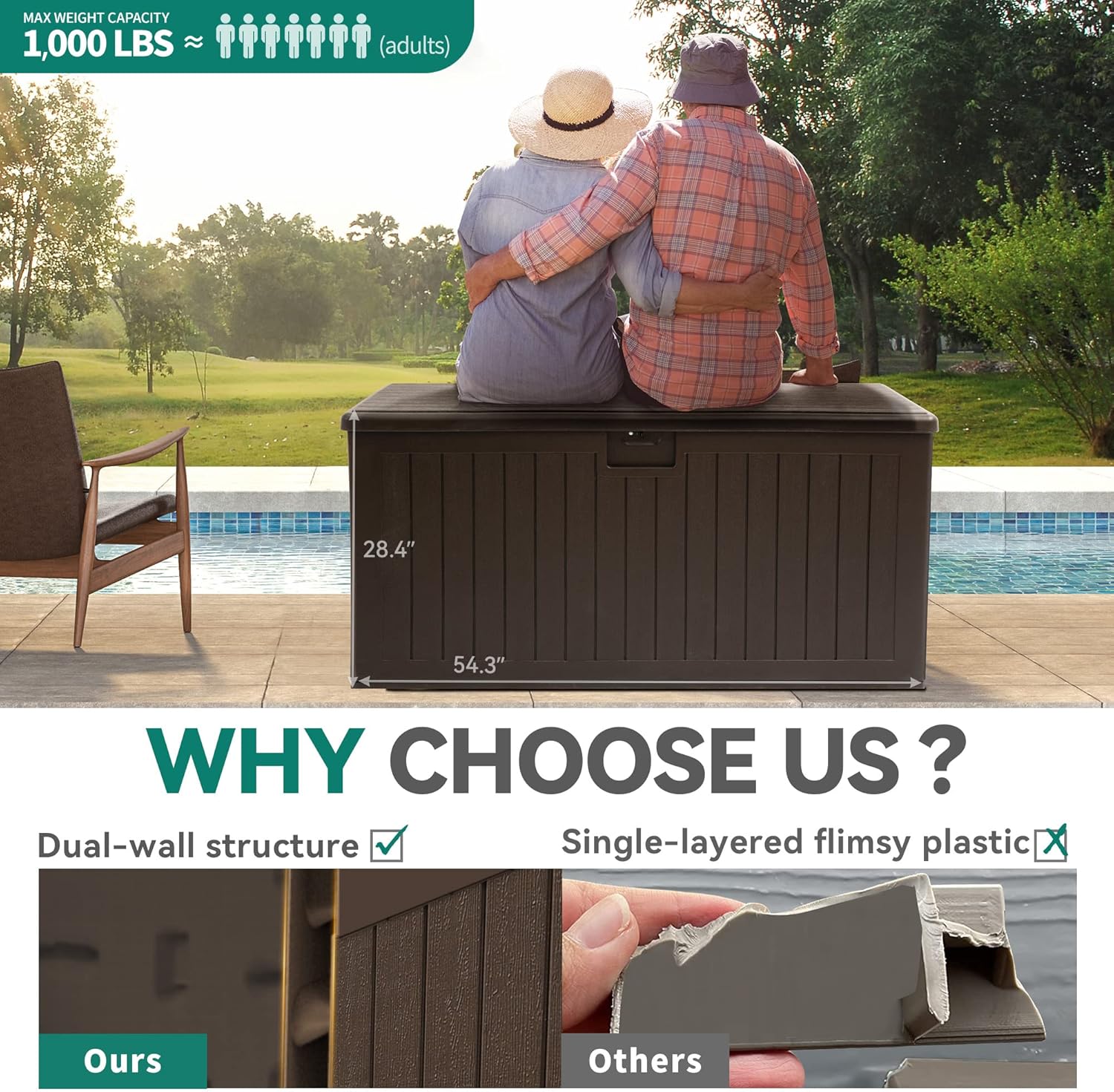 • Large 150-Gallon Capacity: The patio storage box measures 54.3"L x 27.2"W x 28.4"H, spacious enough to store various items such as cushions, tools, supplies