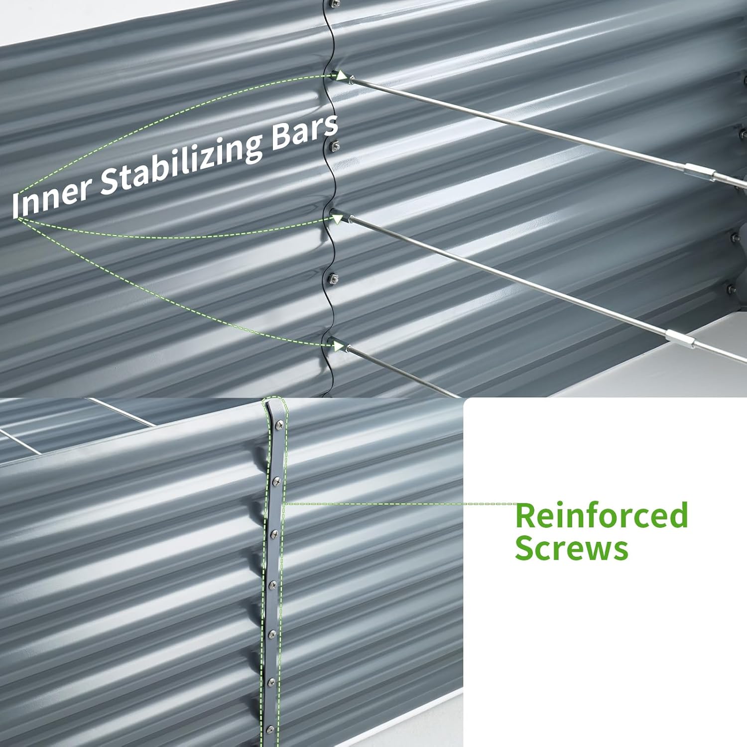 • 【Sturdy and Durable】The raised bed is made of thickened galvanized metal for strength and durability. The surface is coated with an upgraded powder coating for strong rust and corrosion resistance for long term use.
