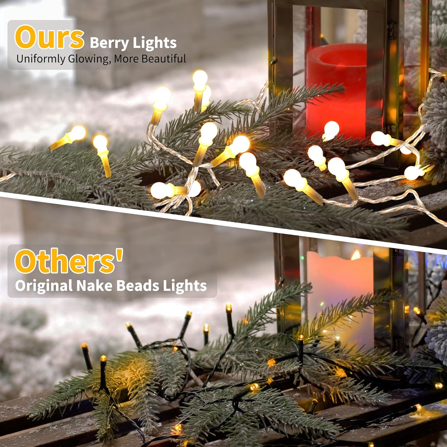 • IP44 Waterproof Warm White Berry String Lights: These outdoor decorative lights feature waterproof, are durable and weather-resistant, making them perfect for indoor & outdoor use. They're versatile, easy to maintain, and add a charming ambiance to any setting, whether it's for a party or everyday enjoyment. Plus, they provide peace of mind with their safety features, ensuring you can enjoy them worry-free in any weather. Perfect to enhance the ambiance of your outdoor spaces, such as patios, decks, balconies, or gardens.