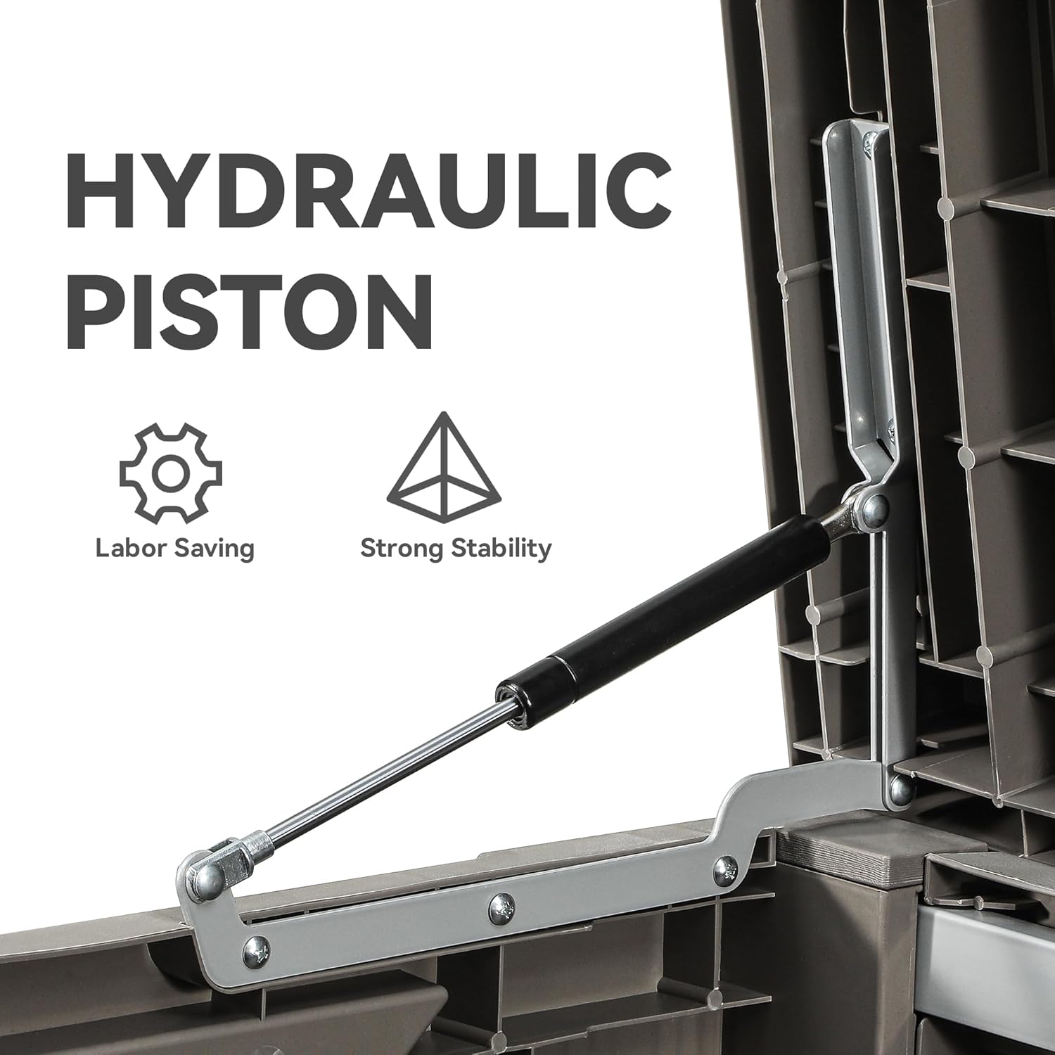 • HYDRAULIC PISTONS: Easy lift and soft close mechanism pulls the top completely open and shut slowly with minimal effort - easy for people to use and no smashed fingers.
