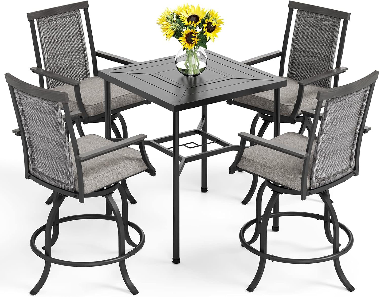 PHI VILLA 5 PCS Outdoor Bar Set,Counter Height Swivel Bar Chairs with Cushion and Metal Bar Table,Patio High Dining Set for Porch