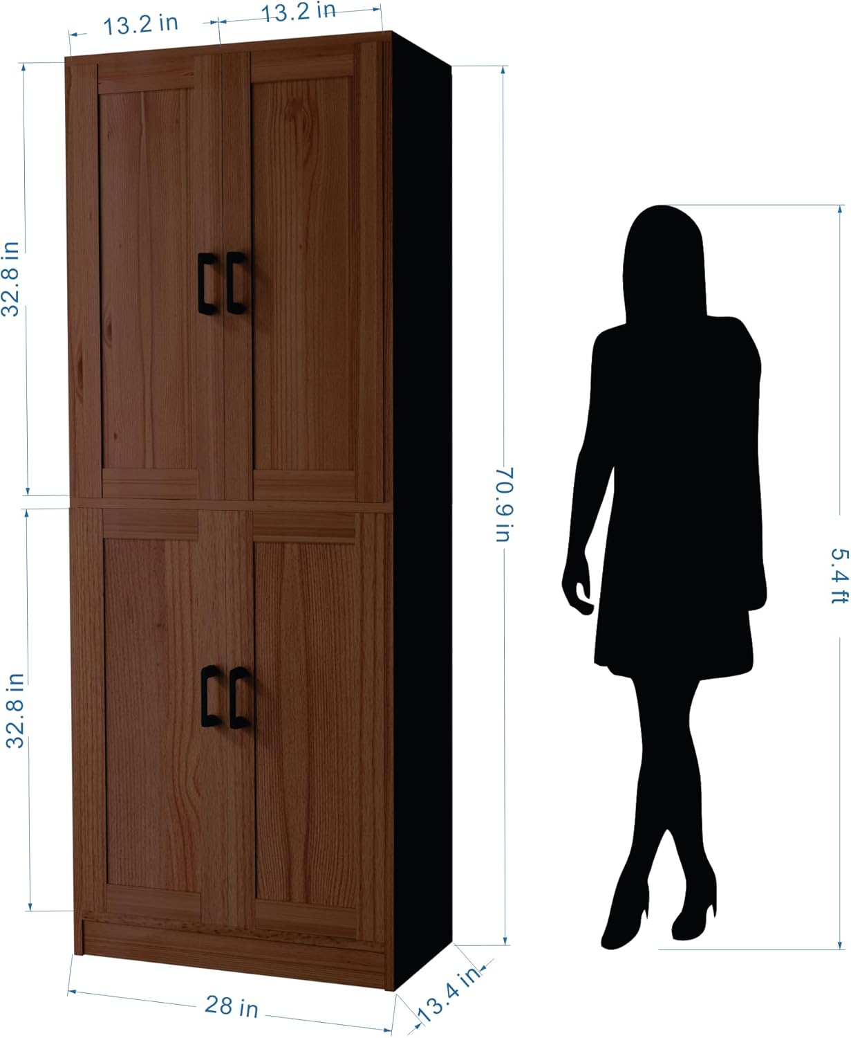 • ✔Multifunctional Storage Cabinet. Our DIYART kitchen pantry works as good as a storage unit and is suitable to use in many different ways at home, such as hallway cabinet or file cabinet in the office. Overall Dimensions: 28"W x 70.9"H x 13.4"D.
