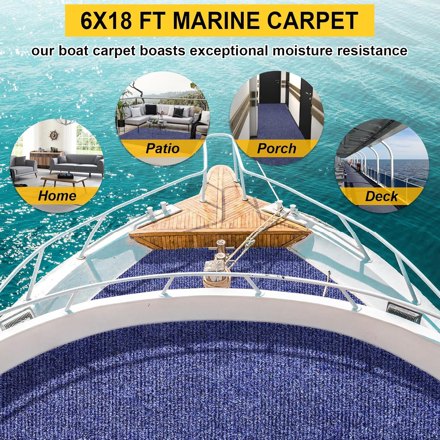 • Premium Indoor Outdoor Carpet: Color: Deep Blue; Size: 6 x 18 FT (1.8 x 5.5 m); Thickness: 0.2 in(5.0 mm). Crafted from high-quality polyester fibers, our boat carpet boasts exceptional moisture resistance, durability, shape retention, and colorfastness, ensuring a long-lasting and vibrant addition to your space.