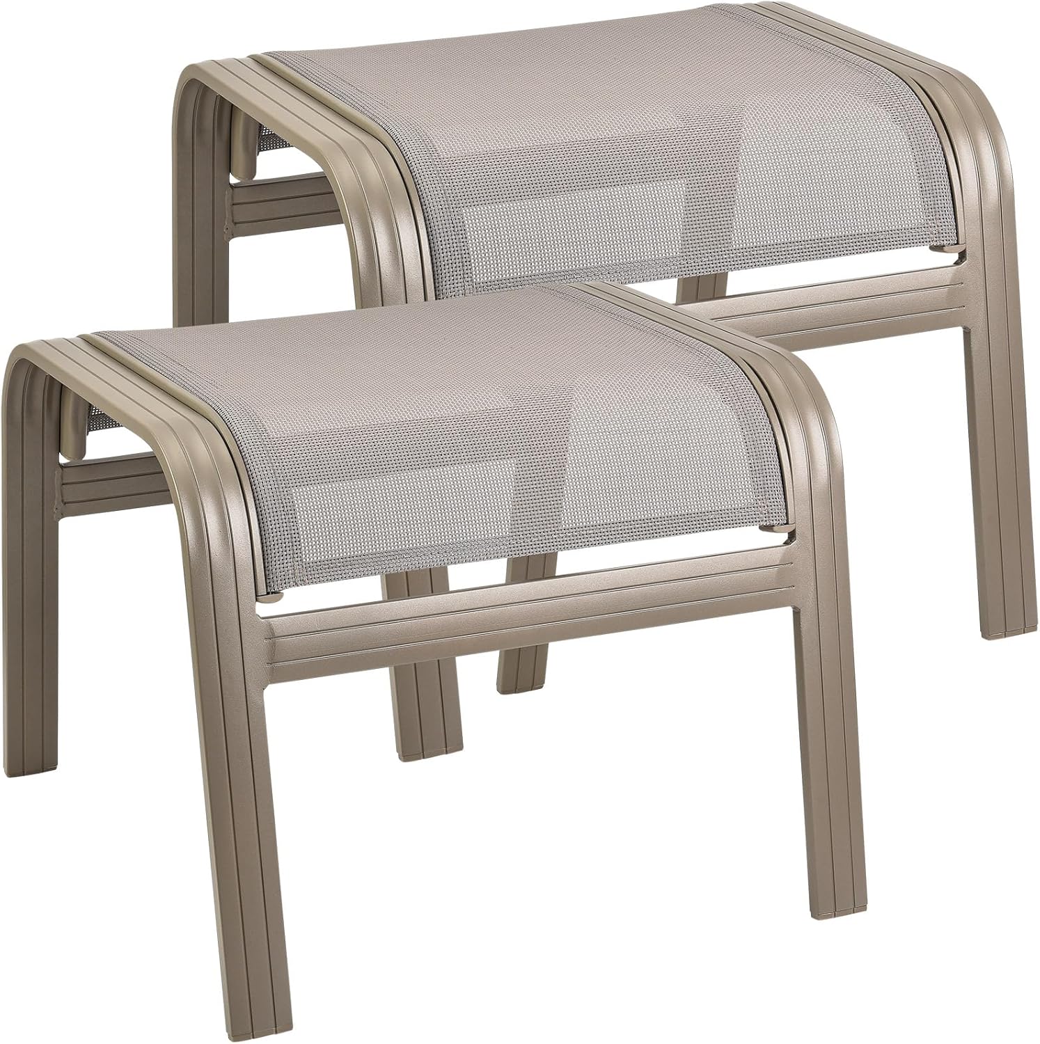 Patio Dining Chairs Footstools Outdoor Aluminum Ottoman Assembled Footrest Side Table 2 Set Champagne
