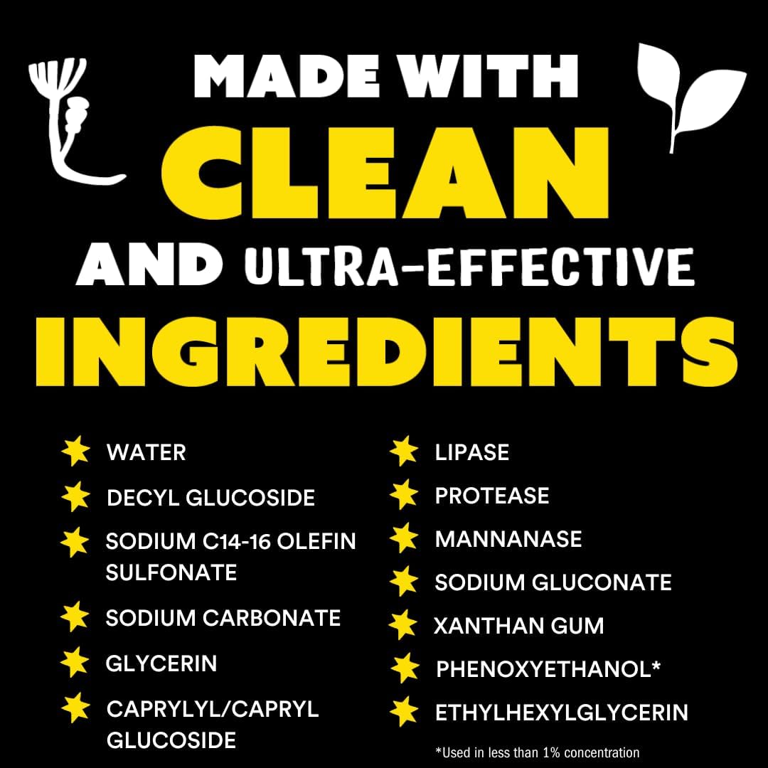 • Dirty diaper blowouts have finally met their match! This ultra concentrated formula is packed with stain-fighting enzymes that remove breast milk, formula and baby poop stains from clothing and cloth diapers. Always check for stains before laundering; treat fabric within 24 hours; read and follow laundry care labels.