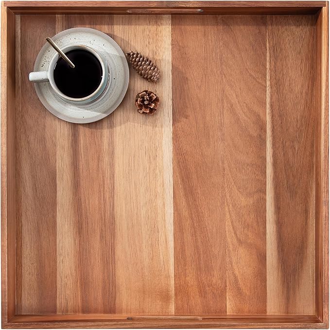 Large Ottoman Tray for Living Room, 20" Extra Large Tray for Ottoman Square Acacia Serving Trays with Handles for Coffee Table, Breakfast, Appetizers, Dinner