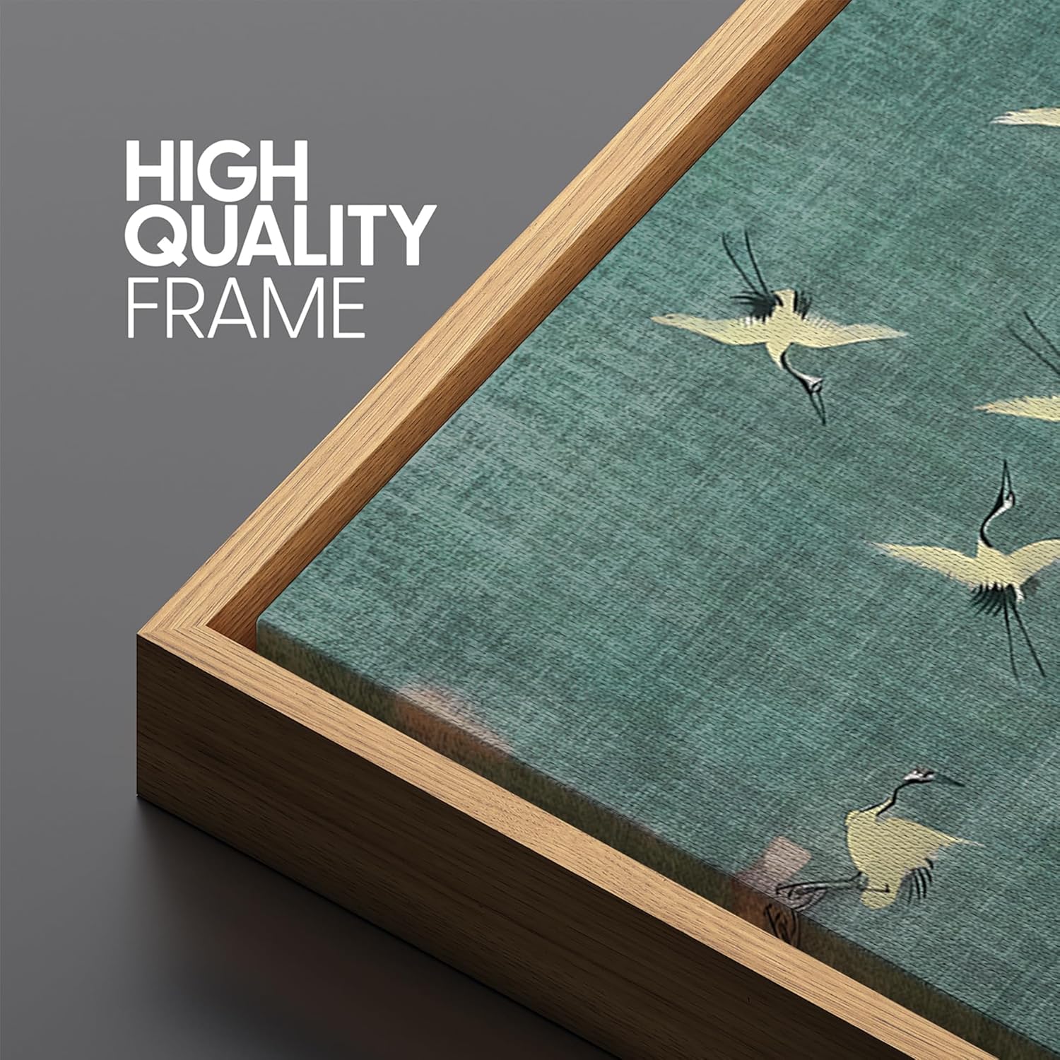 MUDECOR Extra Large Framed Canvas Print Wall Art Serene Skies White Birds in Flight on Teal Antique Retro Fine Art Illustrations Decorative Colorful for Bedroom - 60"x30"