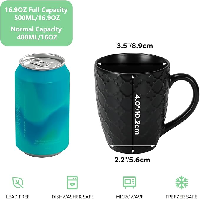 • Drinking Capacity: This matte black coffee mug has a maximum capacity of 16.9 oz/500ml, with a standard capacity of 16 oz, which can meet your daily needs and fit with coffee, latte, milk, etc . The large handle design provides a comfortable grip and convenient use