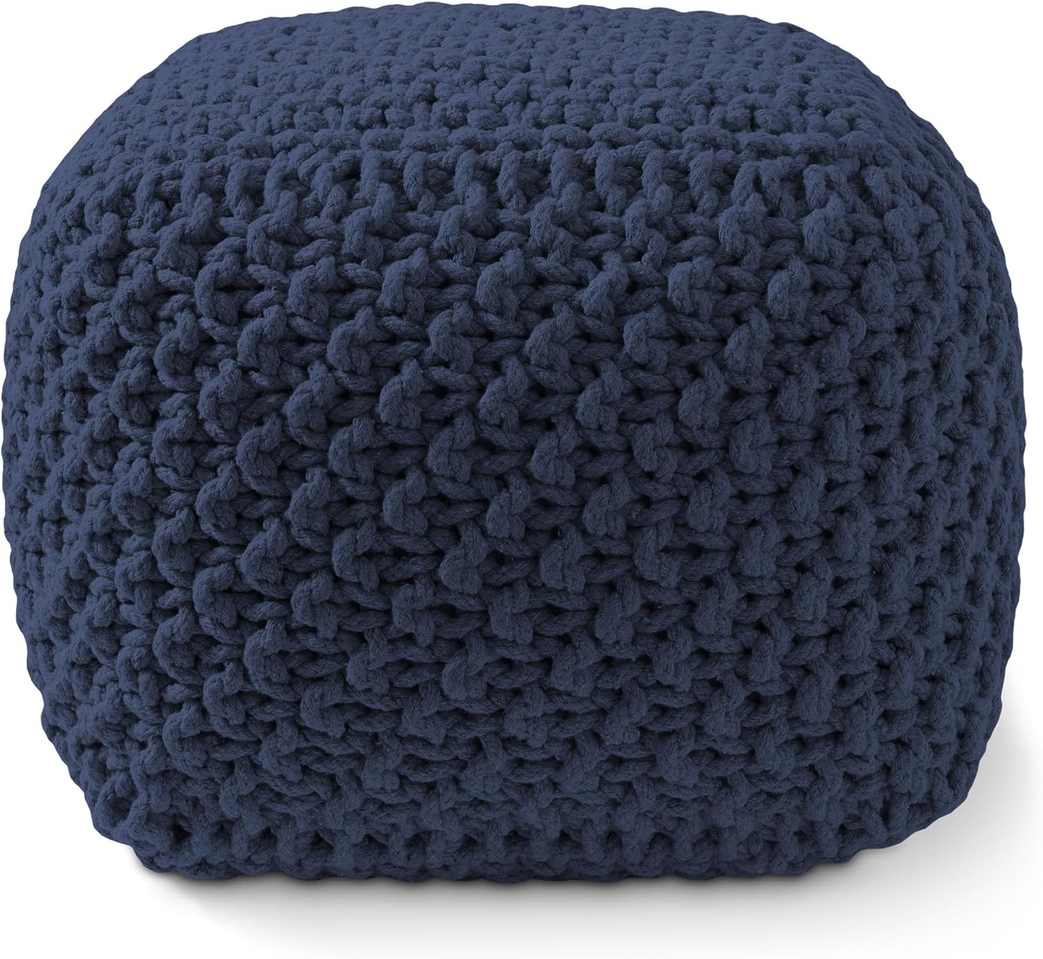 Casafield Square Pouf Ottoman, Navy Blue 18.5" W x 18.5" D x 14.5" H Cotton Knit Foot Stool - Boho Floor Pouffe for Living Room, Bedroom, Home Office