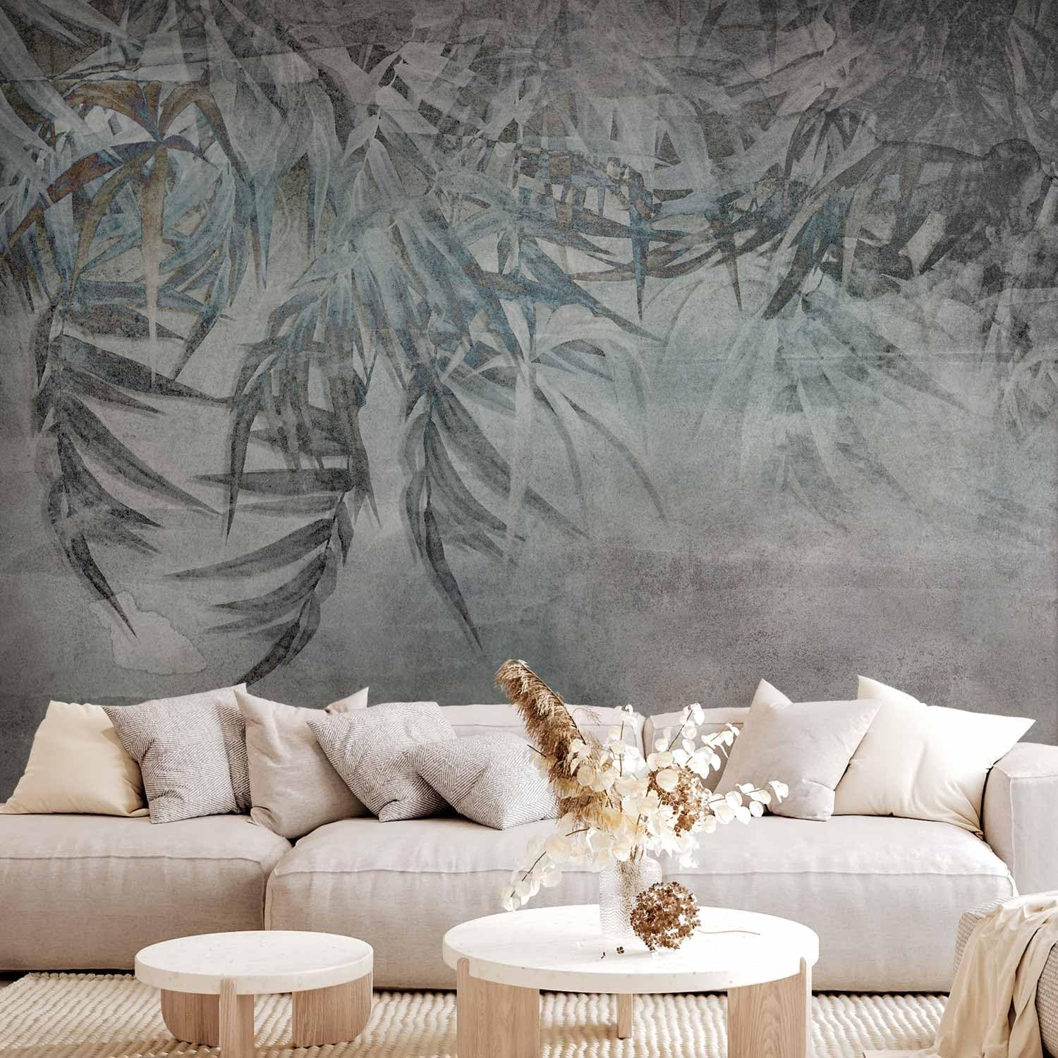 artgeist Wall Mural Leaves 193x138 in - XXL Peel and Stick Self-Adhesive Wallpaper Removable Large Sticker Foil Wall Decor Print Picture Image Design Palm Leaves Concrete Nature Grey b-C-10103-a-a