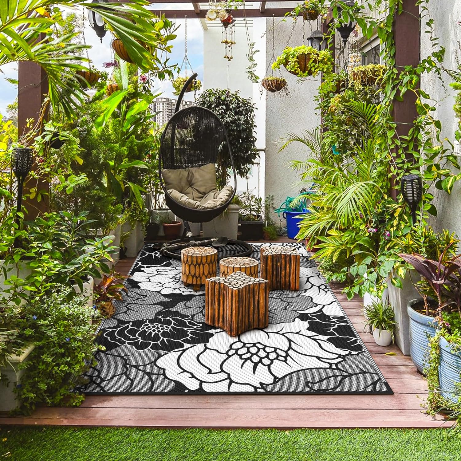 • Upgraded Material: The Outdoor area rug is made of 100% virgin polypropylene, crafted with care for sustainability, and is double-sided woven for extra durability. The stitching of the outdoor carpet is flat and fine with neat edges. Plus, the high-end UV coating and edge heat treatment technology prevent fading and sun damage without worrying about wear and tear