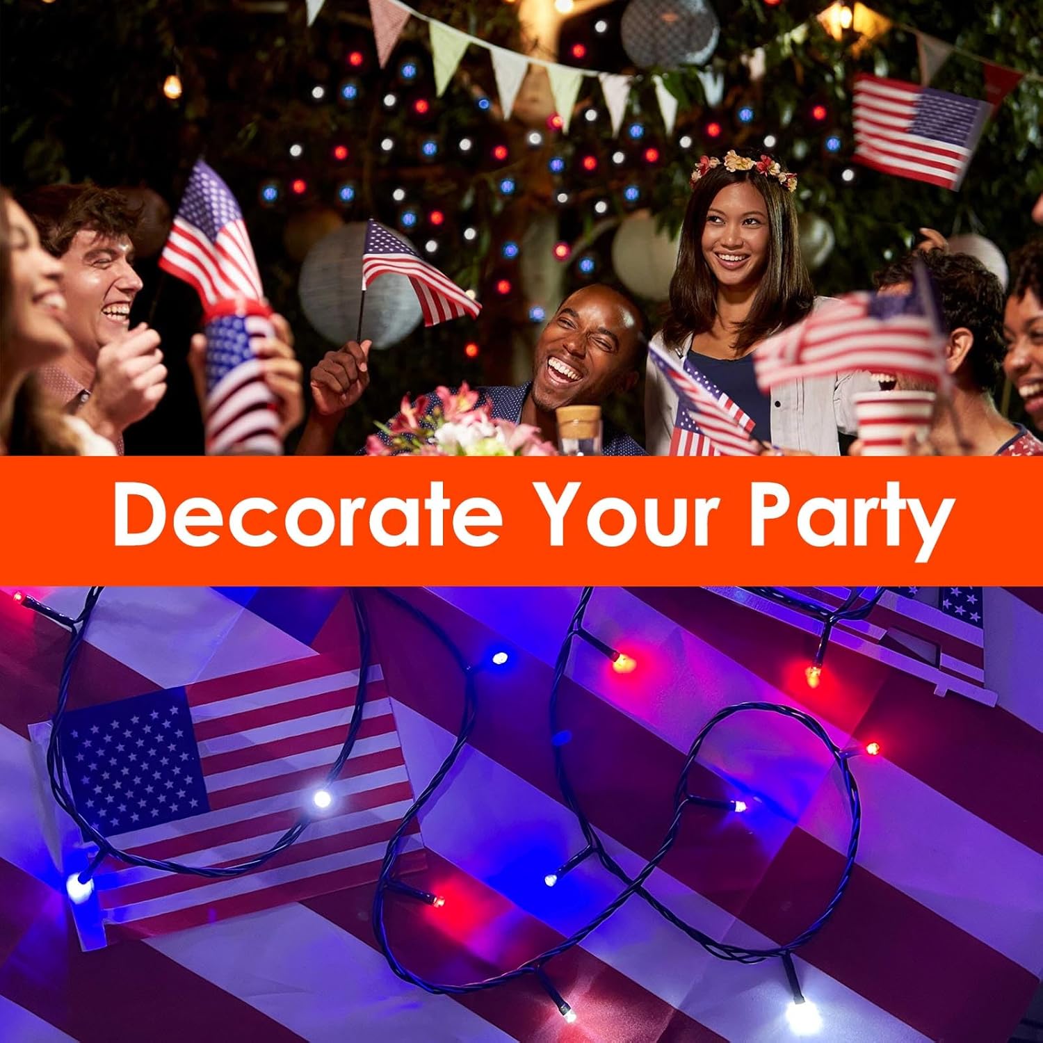 • Waterproof Outdoor patriotic decorations: Show your patriotic spirit with these unique patriotic decor string lights.Perfect for Memorial Day, Labor Day, Independence day, fourth of July decorations, Veterans Day,festival, holiday,party,ceremony,Patriotic party celebration supplies etc.