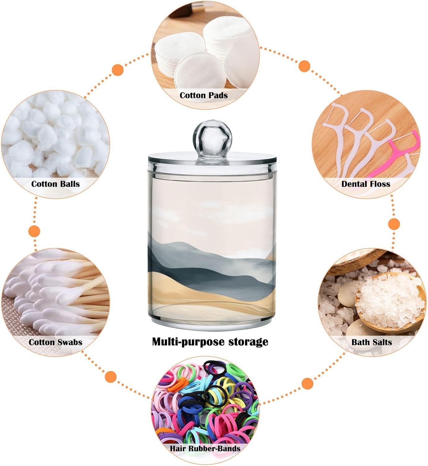 • EASY TO USE - As excellent bathroom accessories, you can easily open this storage canister with one hand. You can use these storage containers for organizing small items and keeping them neat and clean. Such as cotton balls, cotton swabs, cotton pads, beauty eggs, face brushes, floss picks, hair ties, bath salt, pens, clips, and more