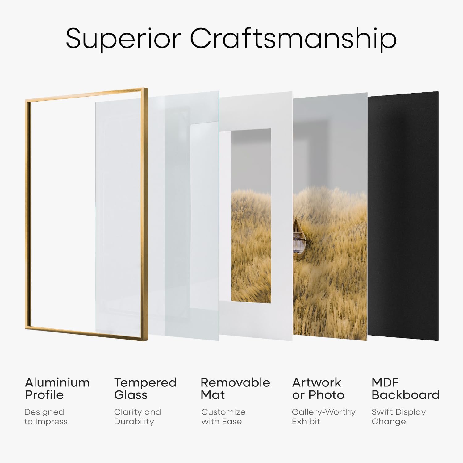 • GALLERY GRADE GLASS, TRUE CLARITY. Why settle for cloudy plexi? Our ultra-clear tempered glass sharpens every detail and adds instant polish to your photo or print.