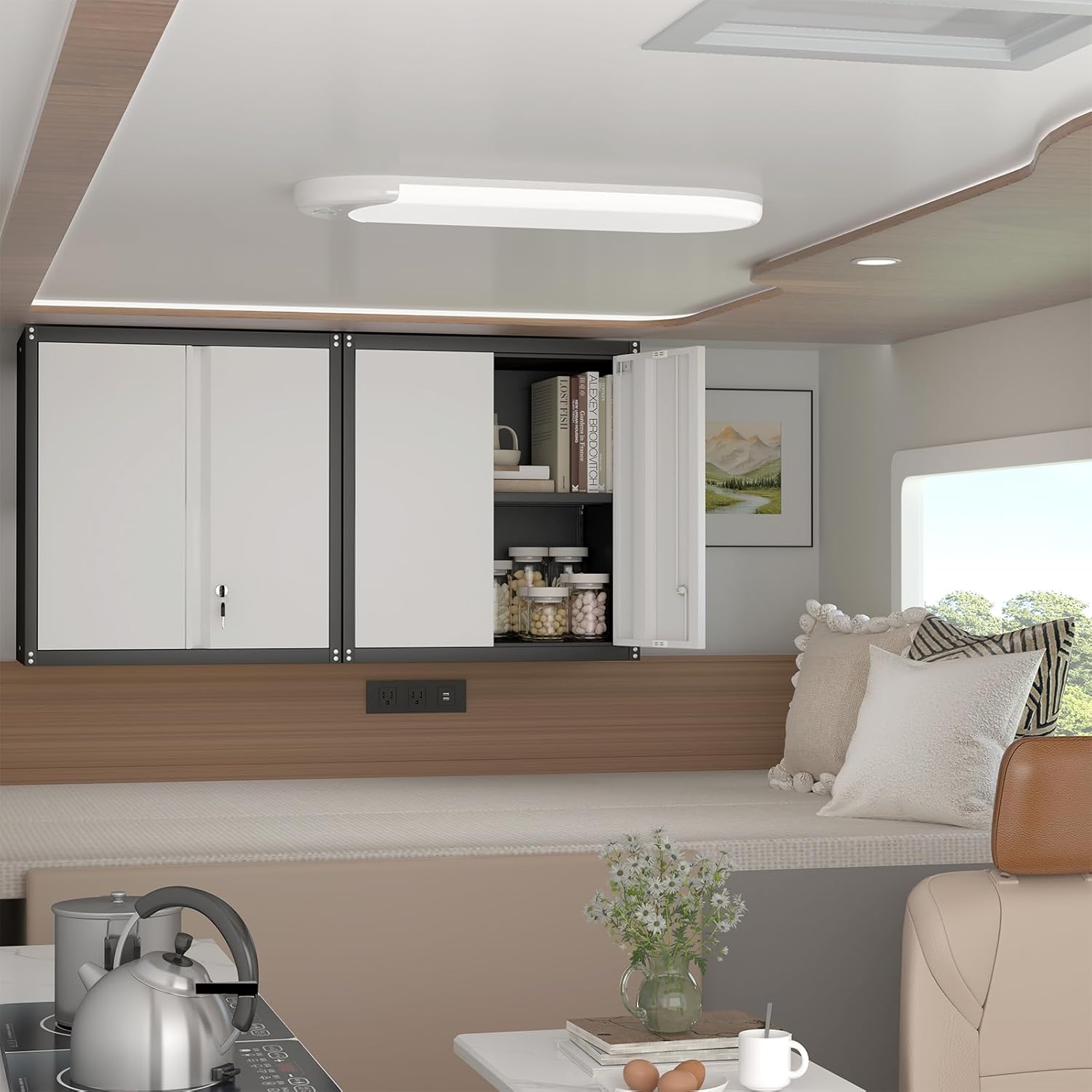 • 【Multipurpose Uses】Hanging locking cabinets are suitable for garages, living rooms, warehouses and other places to store heavy tools, books, magazines and other items. Its wall-mounted design can also be used as a partition to divide different space areas.