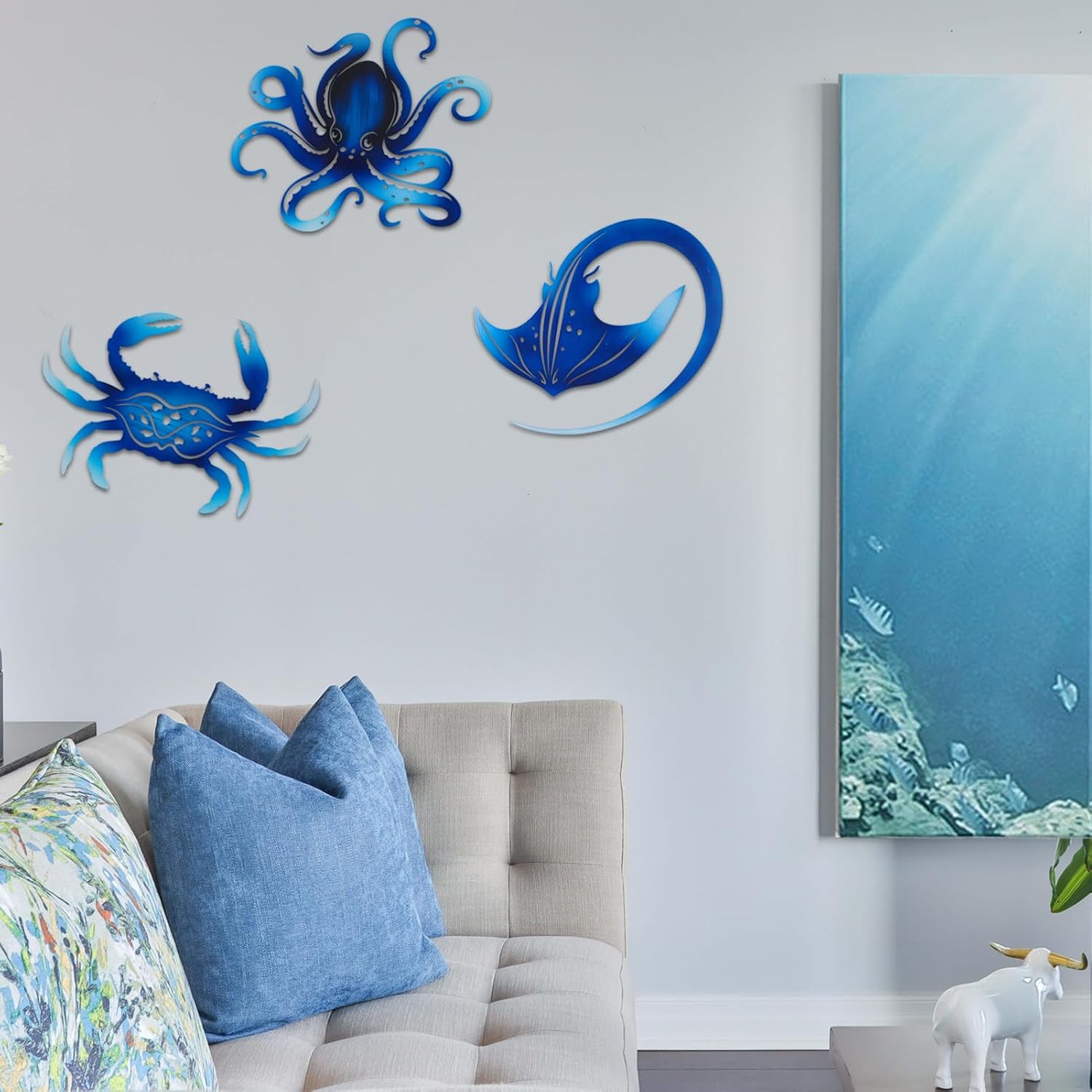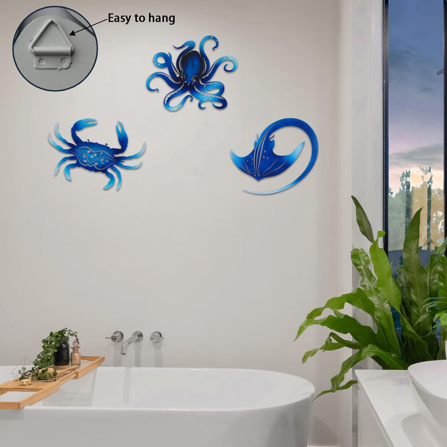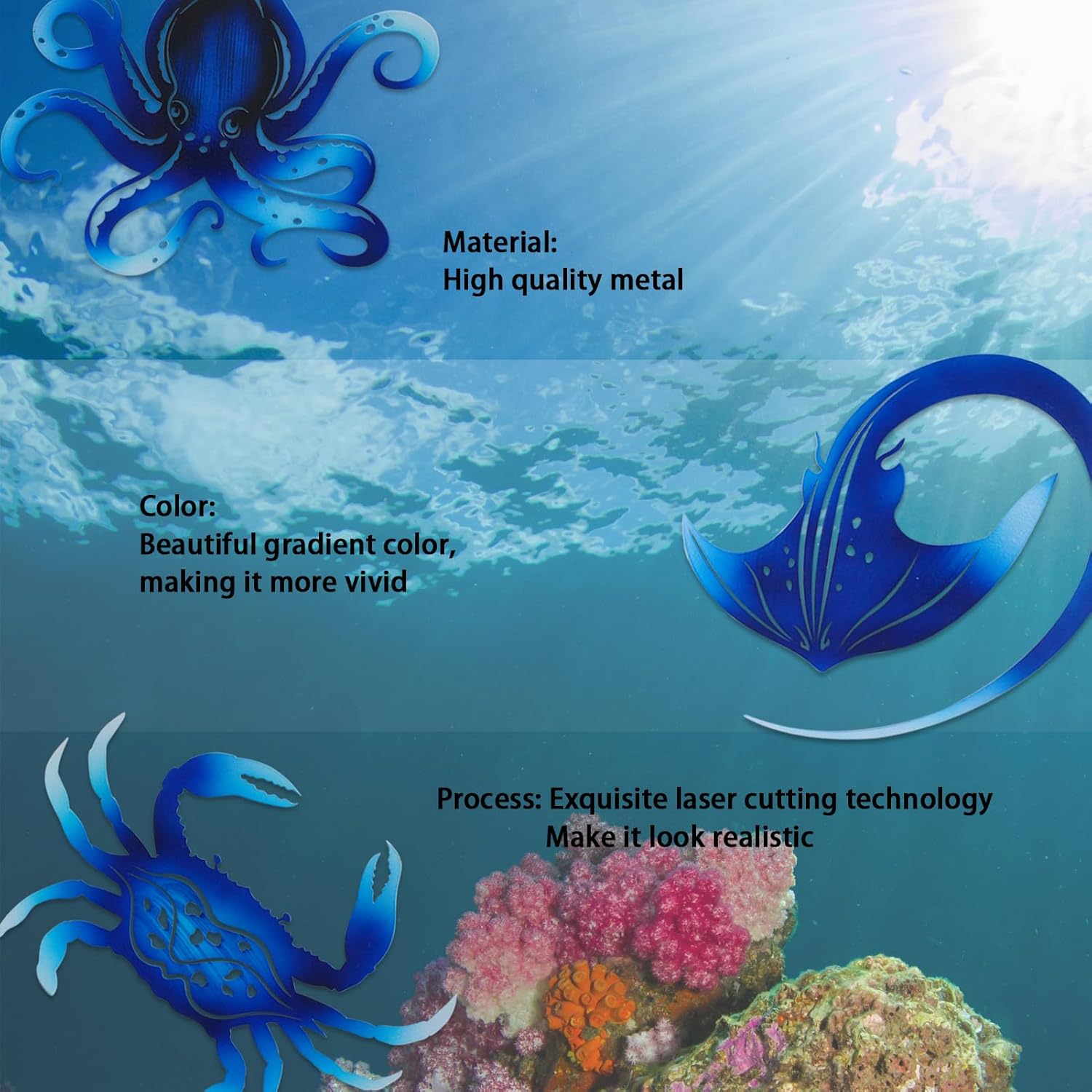 Metal Octopus Crab Manta Ray Coastal Nautical Ocean Decor Outdoor Metal Wall Art Decor Garden Pool Patio Bathroom Yard Farmhouse Fence Deck