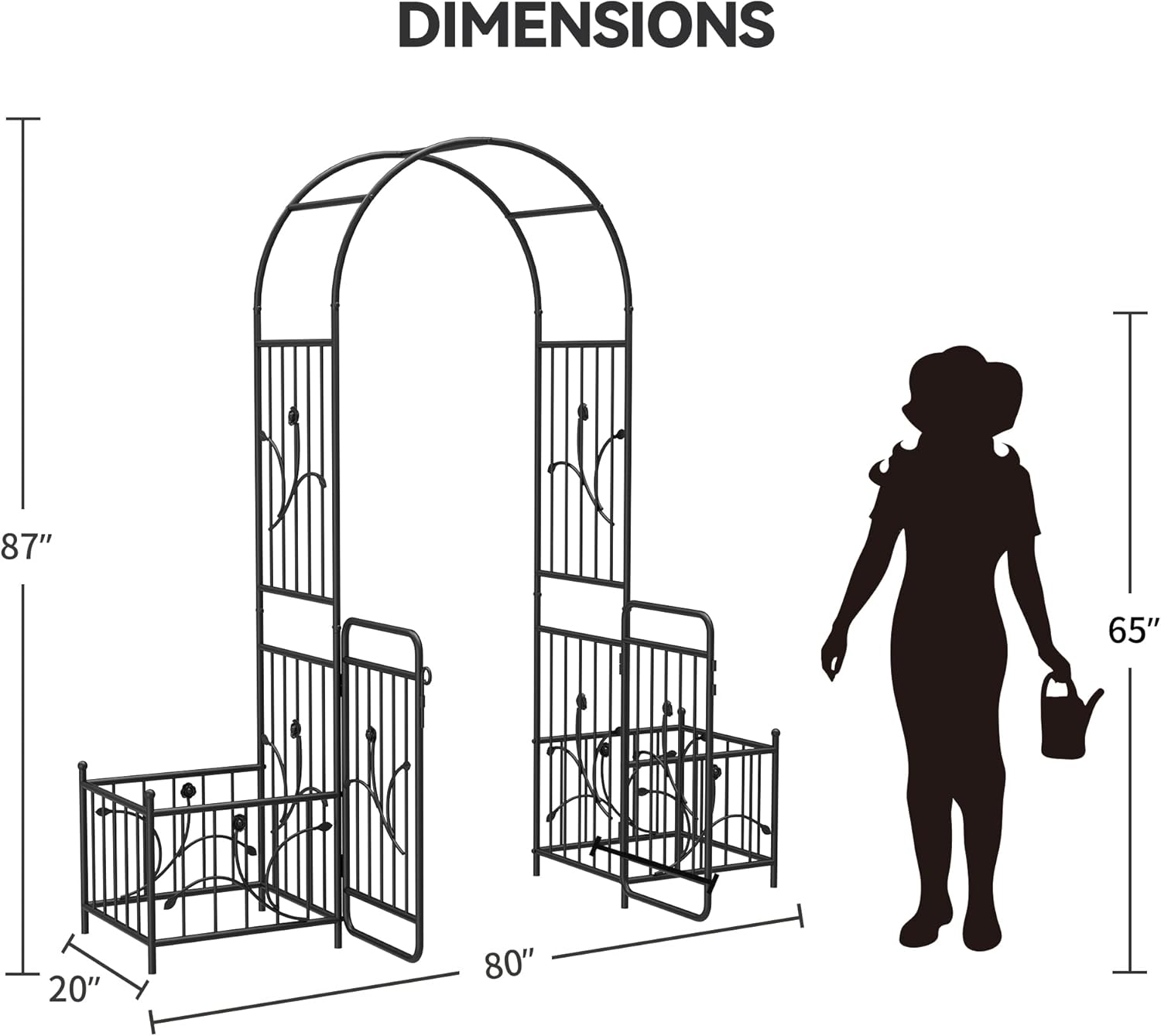 • Garden Arbor with Gate and Planter Boxes: The garden arbor features a double gate that can be opened and closed at will. Side planter boxes are attached to grow beautiful flowers for a gorgeous display. Works great as an entrance to your patio, backyard, and courtyard.