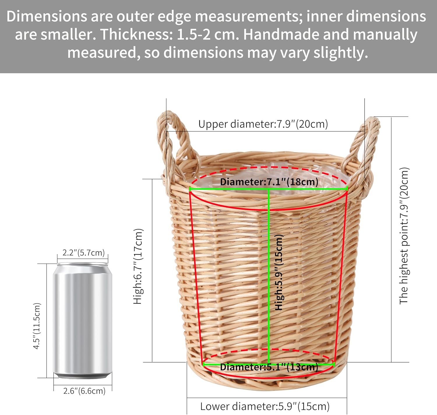 Handwoven Wicker Planter Basket with Waterproof Liner – Natural Yellow Decorative Flower Pot Holder for Indoor Use - Small Size (Inner Top Ø 7", Inner Height 5.9")