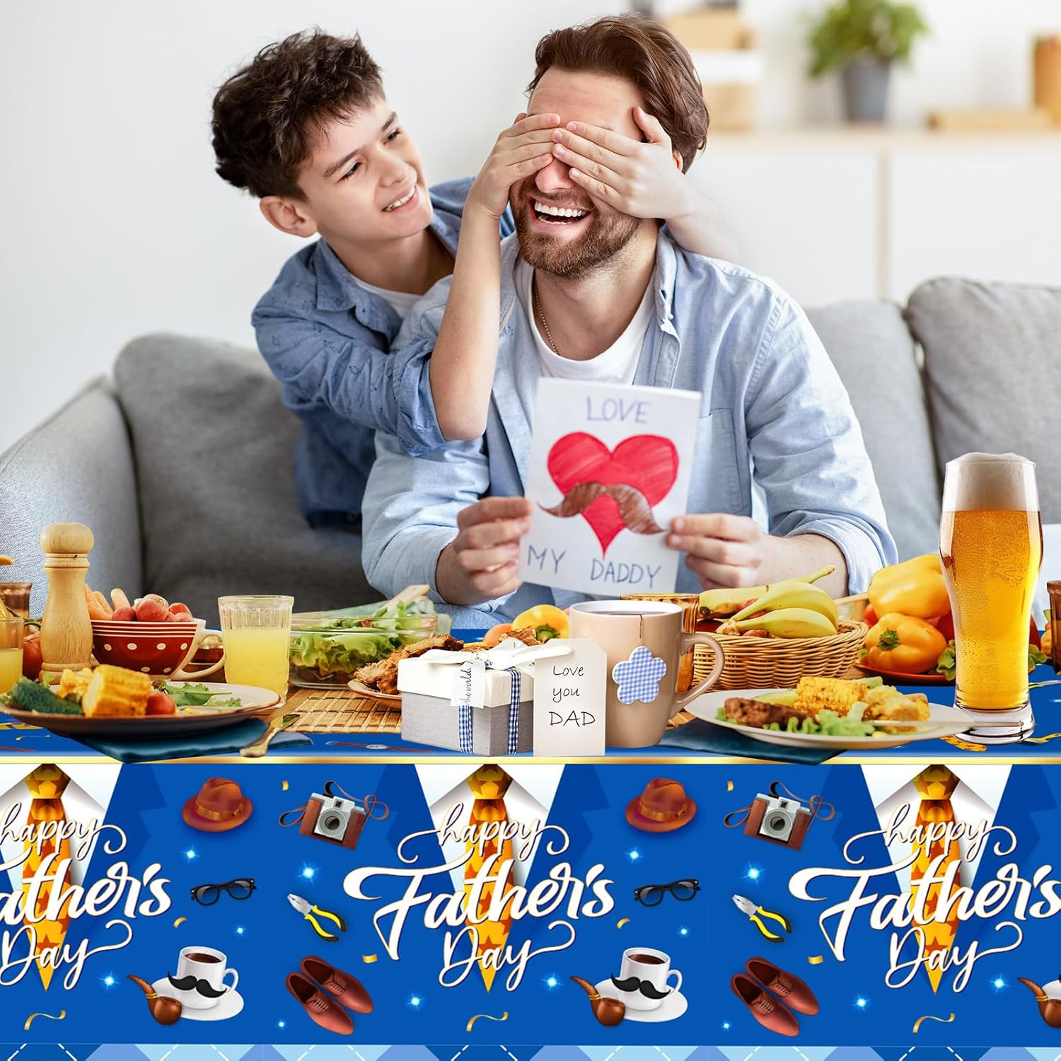 • 👨【Premium Quality And Easy To Clean】- These happy father day table cloths are made of carefully selected, quality-tested plastic material, which is durable, smooth, odorless, waterproof, oilproof, and easy to clean. Without worrying about wondering how to clean up the mess, just toss them away or simply wipe down. They're not only the table decorations for fathers day themed parties, but also the protectors for your tables and furnitures.