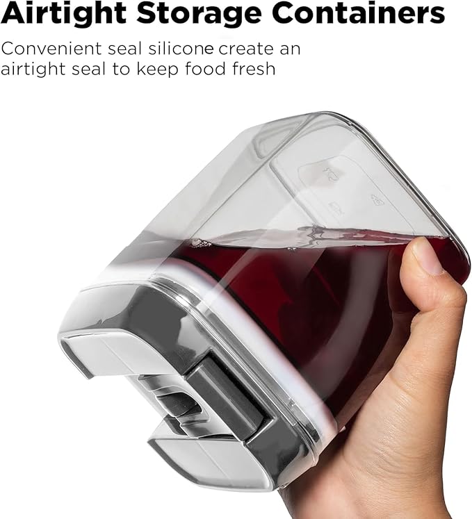 • 【 ULTIMATE FRESHNESS WITH AIRTIGHT LIDS 】 The easy-pour corners, leak-proof and airtight silicone seal ensure freshness of your food, prevent spills, making them perfect for storing everything from spices and herbs to snacks and liquids, these air tight pantry storage containers provide a versatile storage solution for both dry and liquid food.