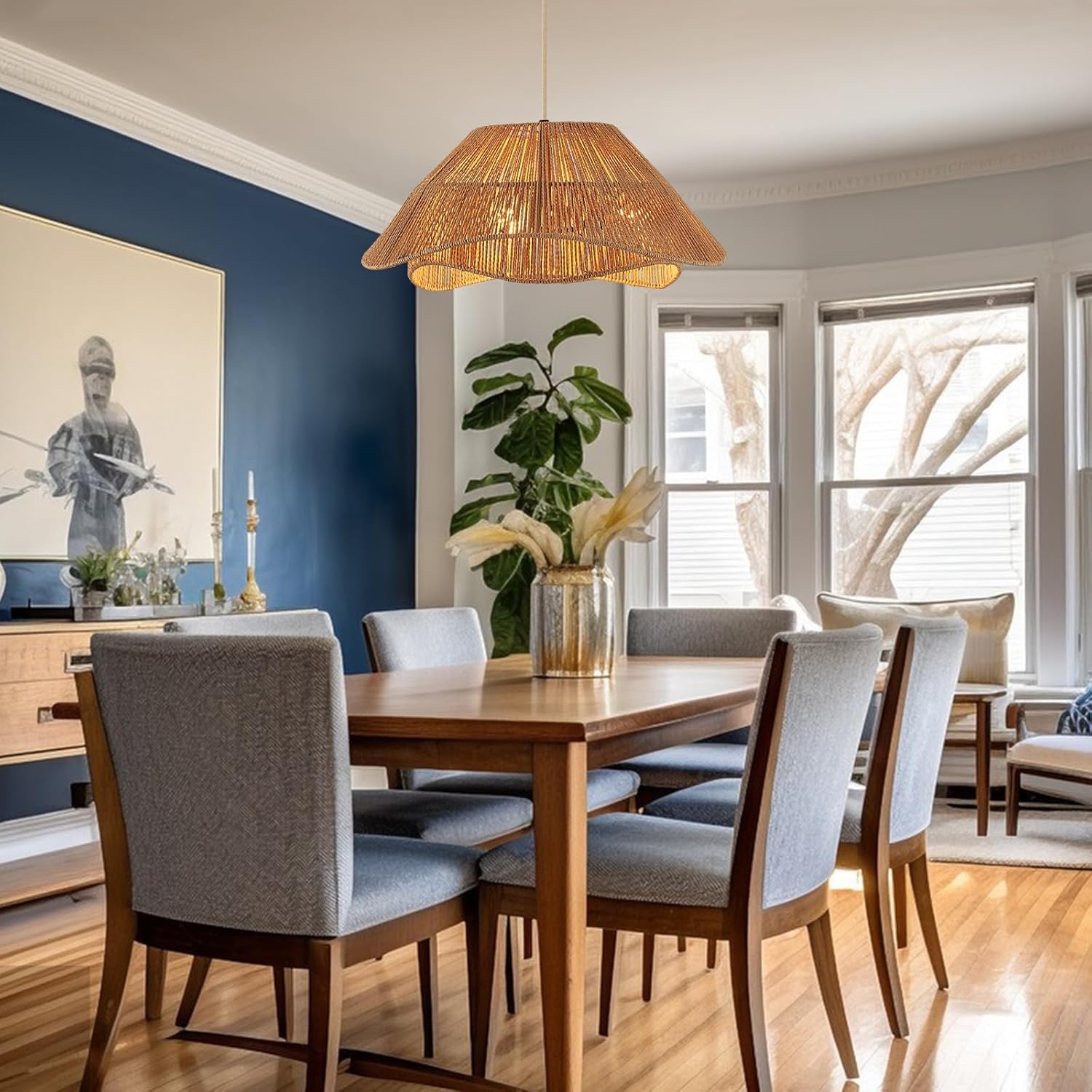 • 【Wide Applications】The 19.68 inch diameter wicker chandelier adds a natural touch to any space and is perfect for hanging in dining rooms, living rooms, bedrooms, kitchen islands, bathrooms, stairway, hallway, foyers, laundry rooms, offices, and other areas, being the highlight of the house.
