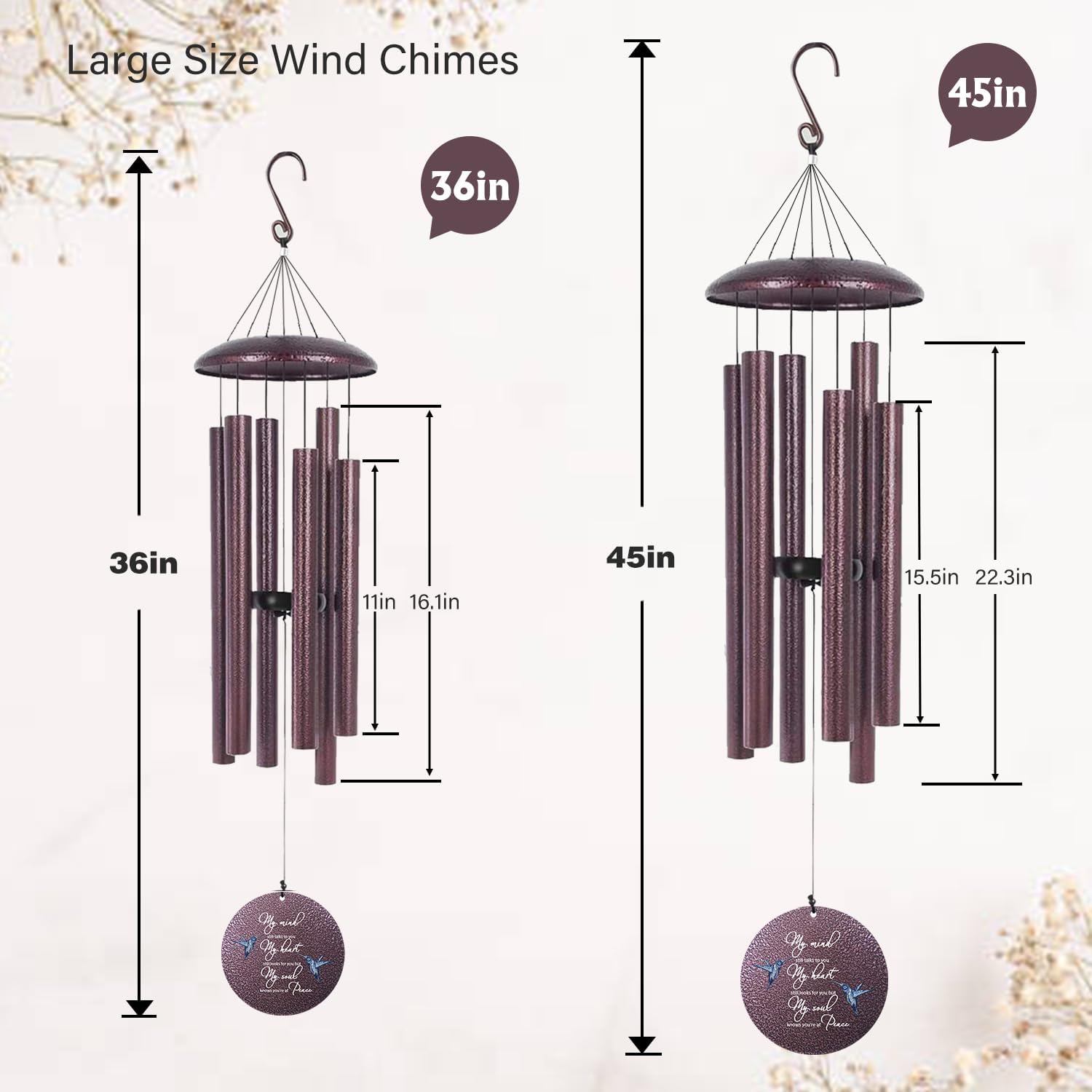 • LARGE OUTDOOR WIND CHIMES: Our large wind is available in 36" and 45" sizes. They are made of bronze metal with a waterproof and anti-corrosion coating and can be hung in the yard for a long time. They can easily decorate the backyard, garden, window, terrace, or living room.