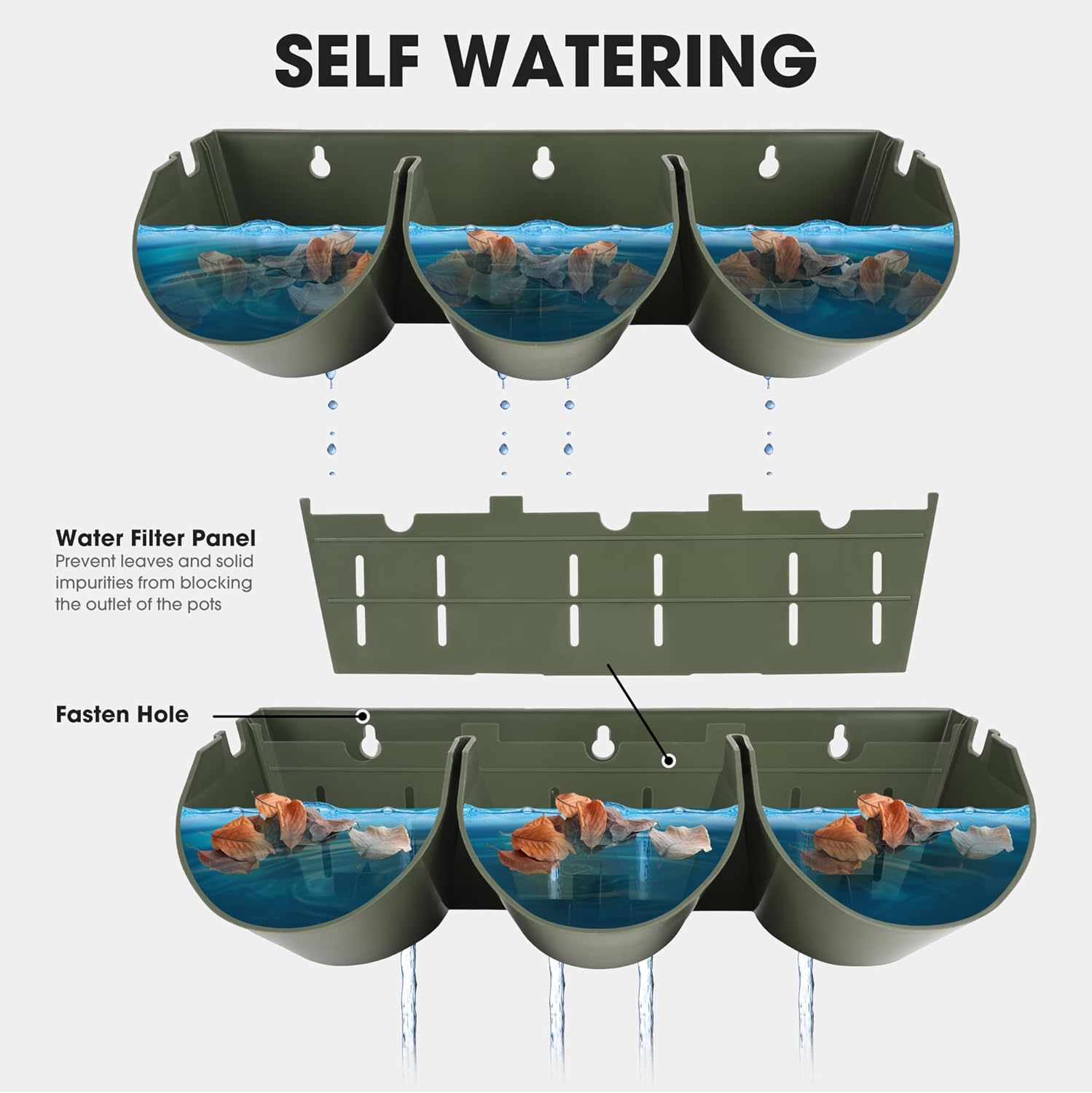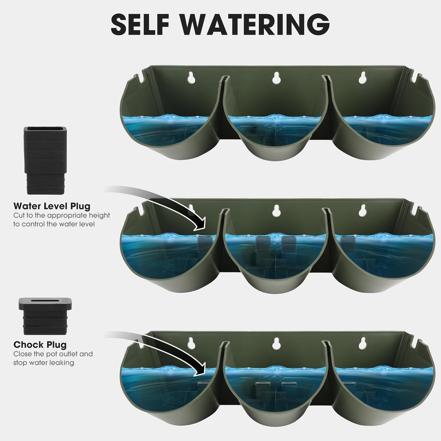 • STACKED VERTICAL DESIGN: The water filtration system from top to bottom can effectively save and retain moisture; Includes 12x water filter panels used to prevent leaves and solid impurities from blocking the outlet of the pots, 48x water level plug used to control the water level and 48x chock plugs to close the pot outlet and stop water leaking