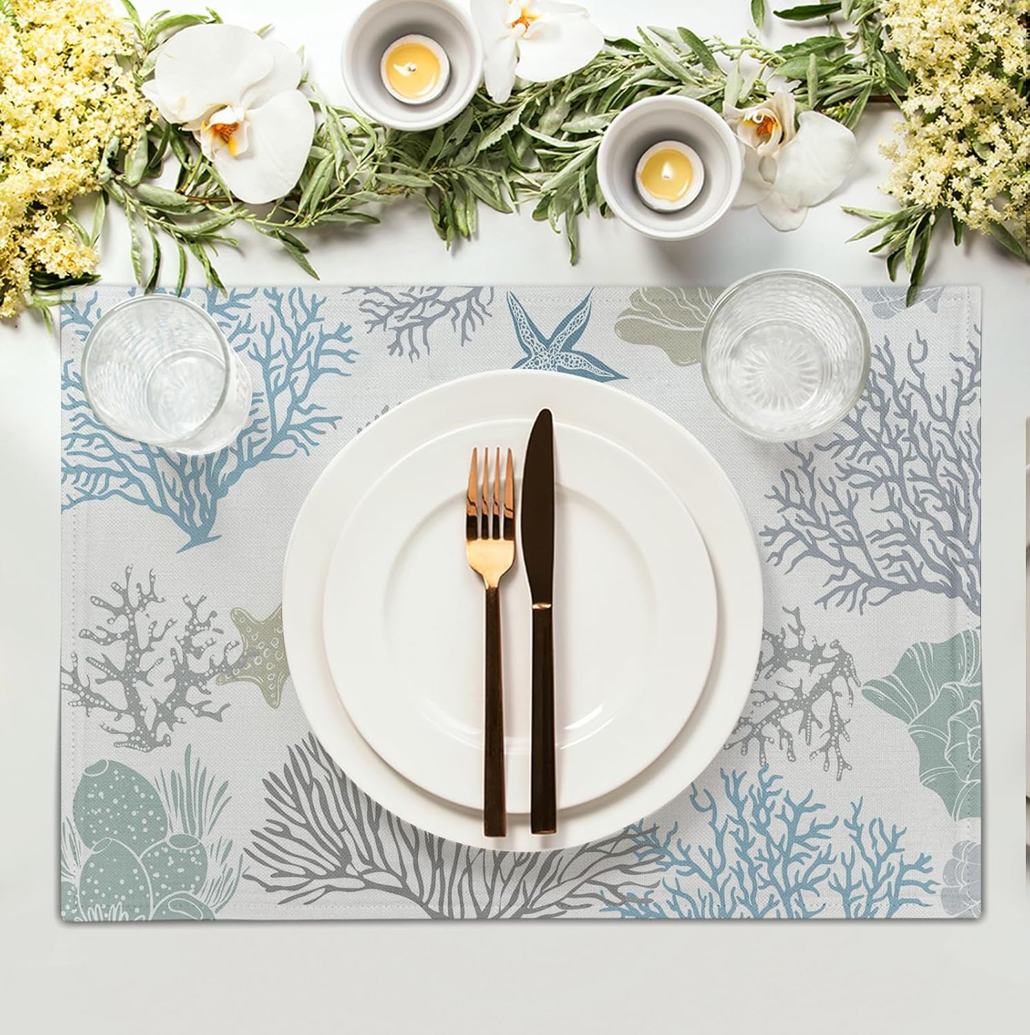 • 【Versatile Occasions】:Perfect for everyday use, the coral starfish seashell placemats is an excellent decorative placemat for any indoor or outdoor use such as the kitchen, dining table, hotel, restaurant, coffee and business office, as well as a beautiful decoration for banquets, dinners, receptions, housewarming, family gatherings, spring summer parties, casual kitchens. This will definitely impress your guests.