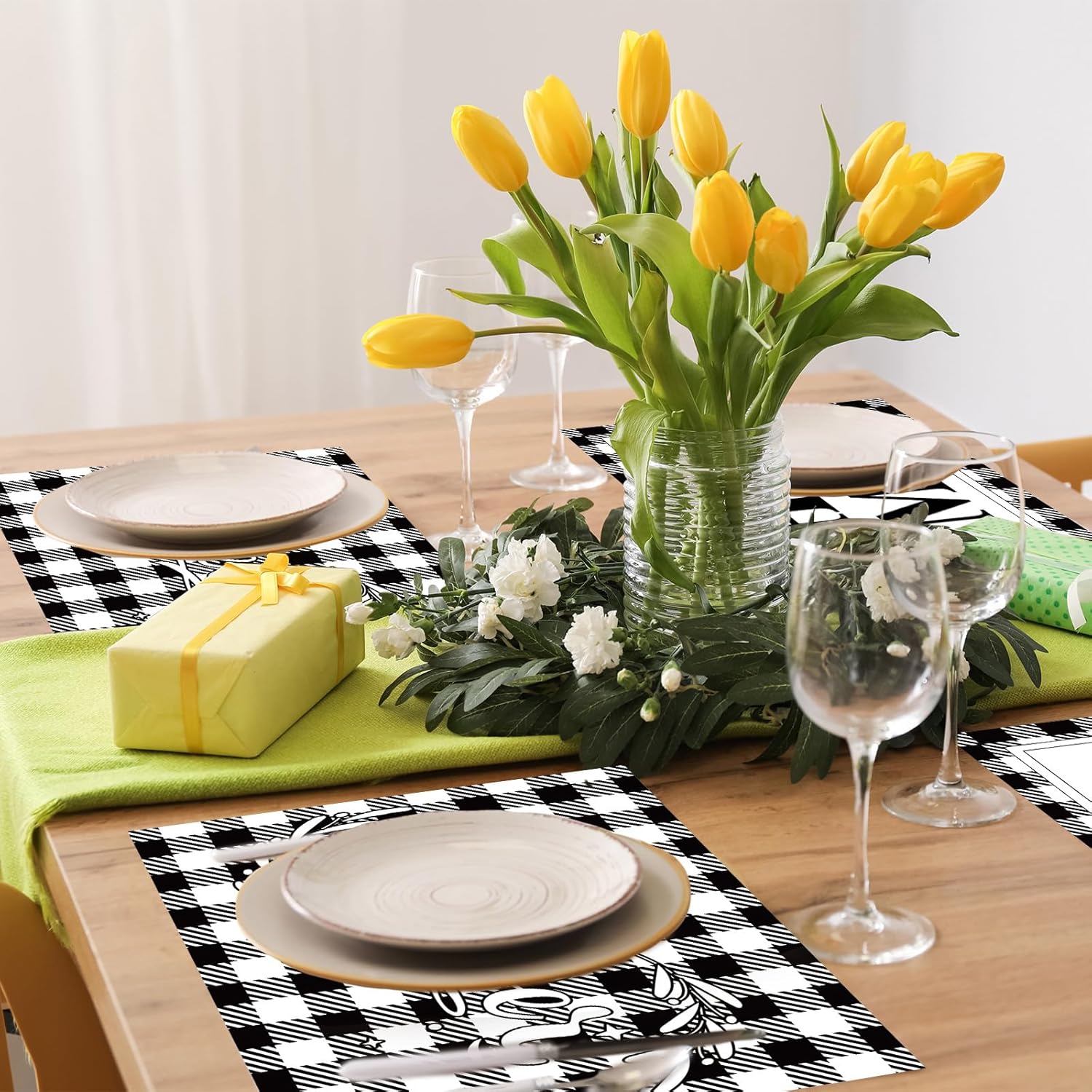 • Love family placemats set of 6: You will get 6 pieces of buffalo plaid plastic placemats. Black and white plaid plastic table mats measure 43 x 32cm/17x 13 inches, making it the ideal size to accommodate your family party and events, which allows you to easily decorate your kitchen table mats and create a stunning centerpiece for your party.