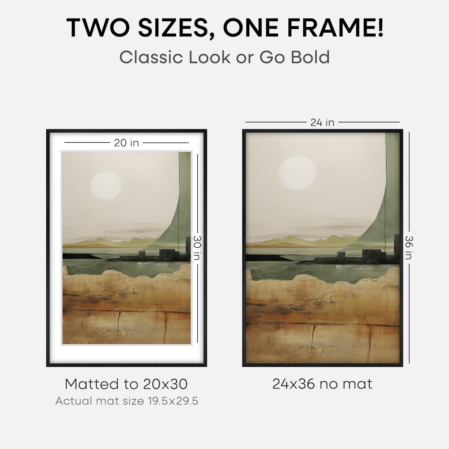 • MATTED OR EDGE-TO-EDGE—YOUR CALL. A crisp 20x30 white mat creates negative space, elevating your image with gallery precision. Or remove it for 24x36 bold, uninterrupted impact.