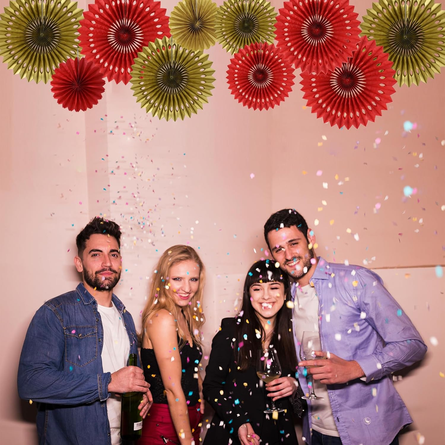 • 【Hanging decoration kit】: includes 10 paper flower fans of 5 sizes, among which the paper flower fan size is 16 inches * 2, 12 inches * 2,10 inches * 2, 8 inches * 2,6 inches*2, color include red,gold.