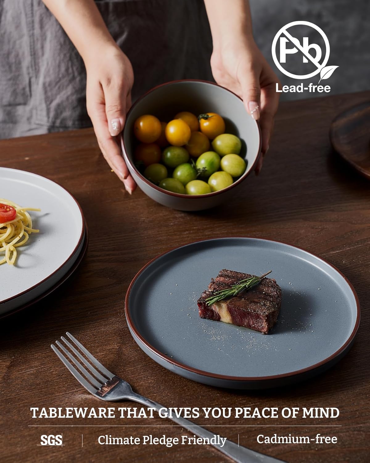 • 【FOOD GRADE NATURAL GLAZE】All of our dinnerware sets are made of food grade glaze. You can safely use them to serve steaks, salads or desserts, no need to worry about any harmful substances leaching into the food.