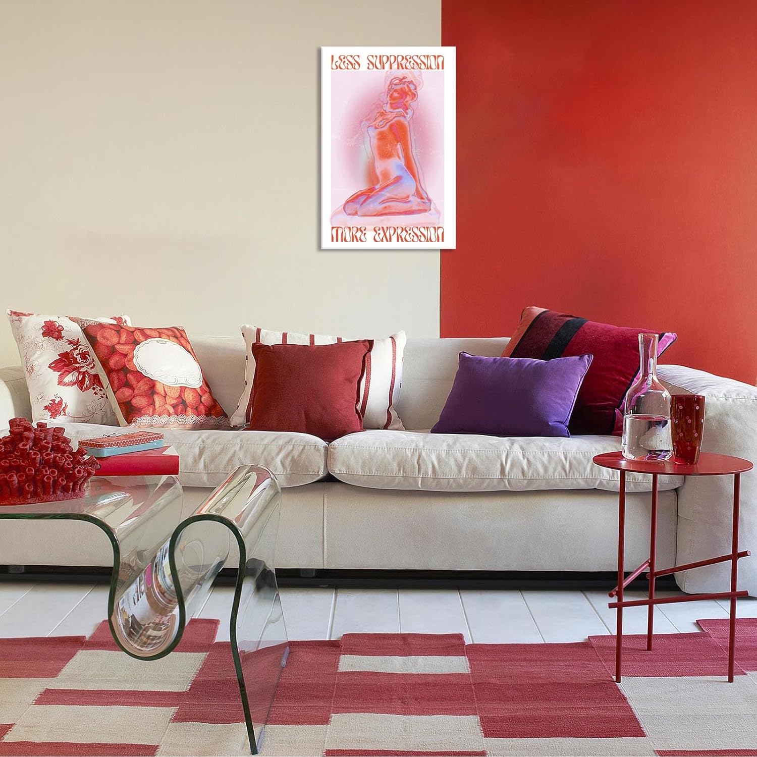 Spiritual Affirmation Art Poster Pink Woman Canvas Wall Art Aesthetic Pictures Sexy Woman Prints Painting Trendy Gradient Aesthetic Wall Decor Living Room Bedroom 16x24in Framed